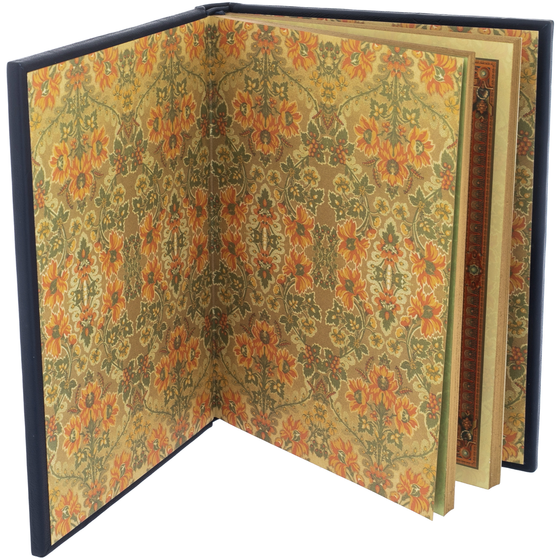 Особенности оформления:цельнокожаный переплет ручной работы; блинтовое тиснение, крашенный в тон переплетного материала обрез; офсетная бумага.