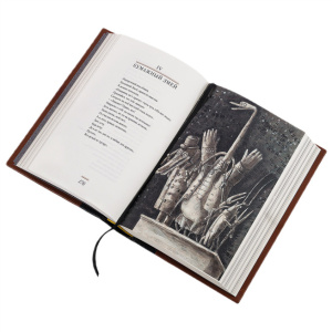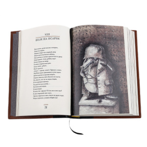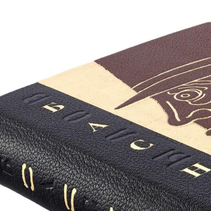 Исполнение:переплет украшен тиснением золотой фольгой и блинтовым тиснением, шелковые каптал и ляссе, форзацы – дизайнерская бумага..