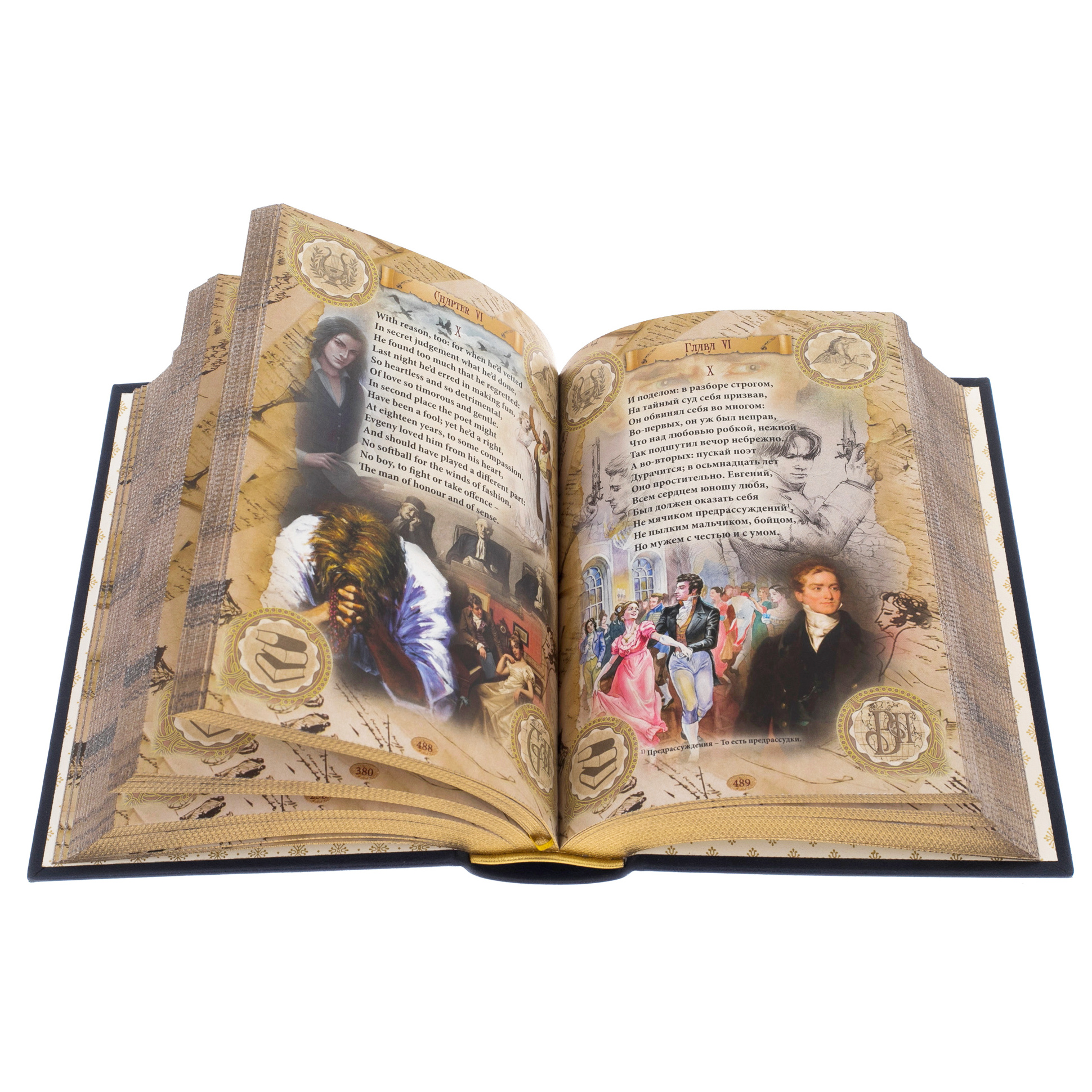 Книга в кожаном переплете "Евгений Онегин." Пушкин А. С. билингвальное издание