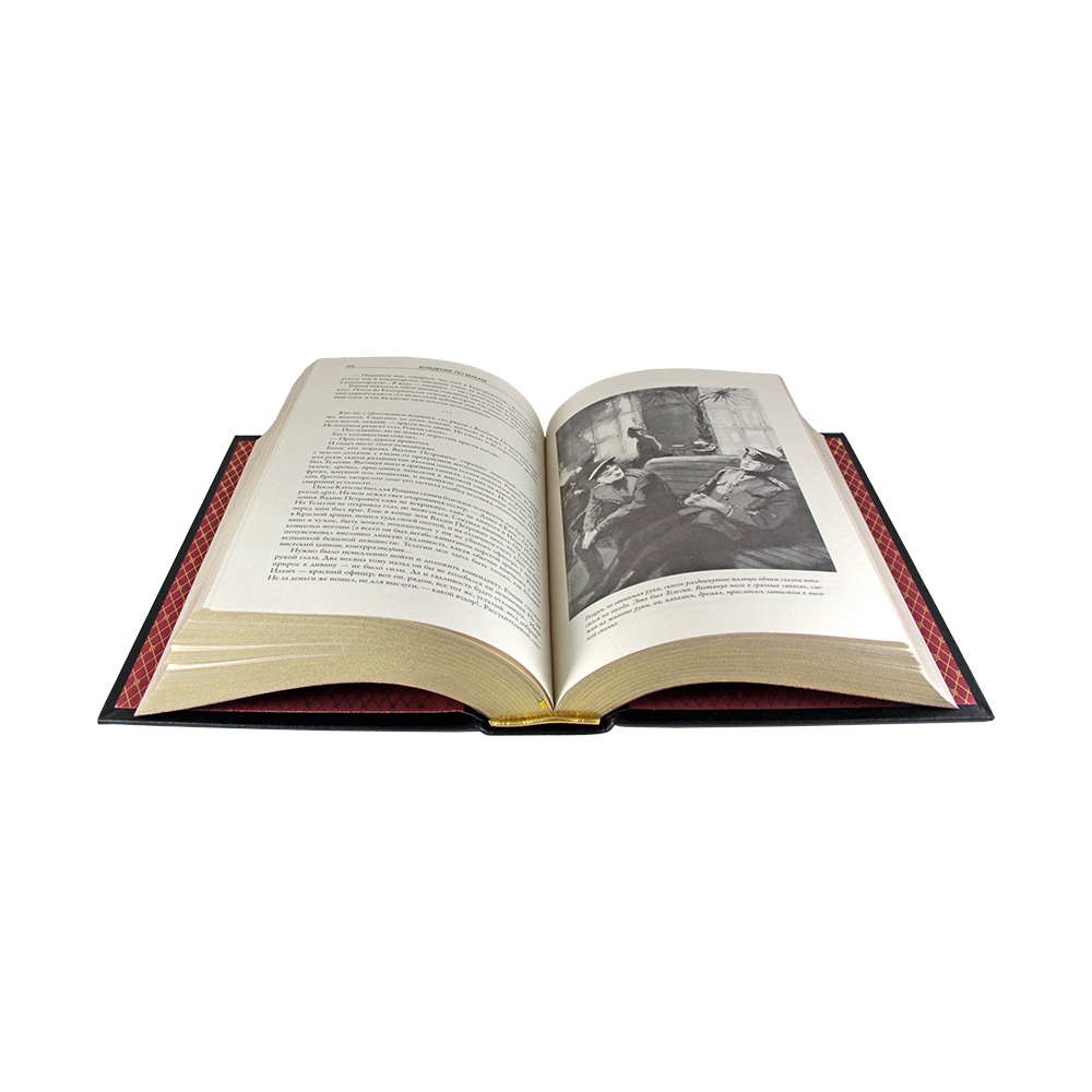 Исполнение:Классический европейский переплёт ручной работы из натуральной кожи. Форзац из дизайнерской бумаги Malmero с тиснением орнамента золотой фольгой. 6 бинтов на корешке, ручной обработки. Каптал золотой из натуральной кожи. Обрез блока — золото с торшонированием. Тиснение блинтовое, золотой и цветной фольгой. Ляссе.