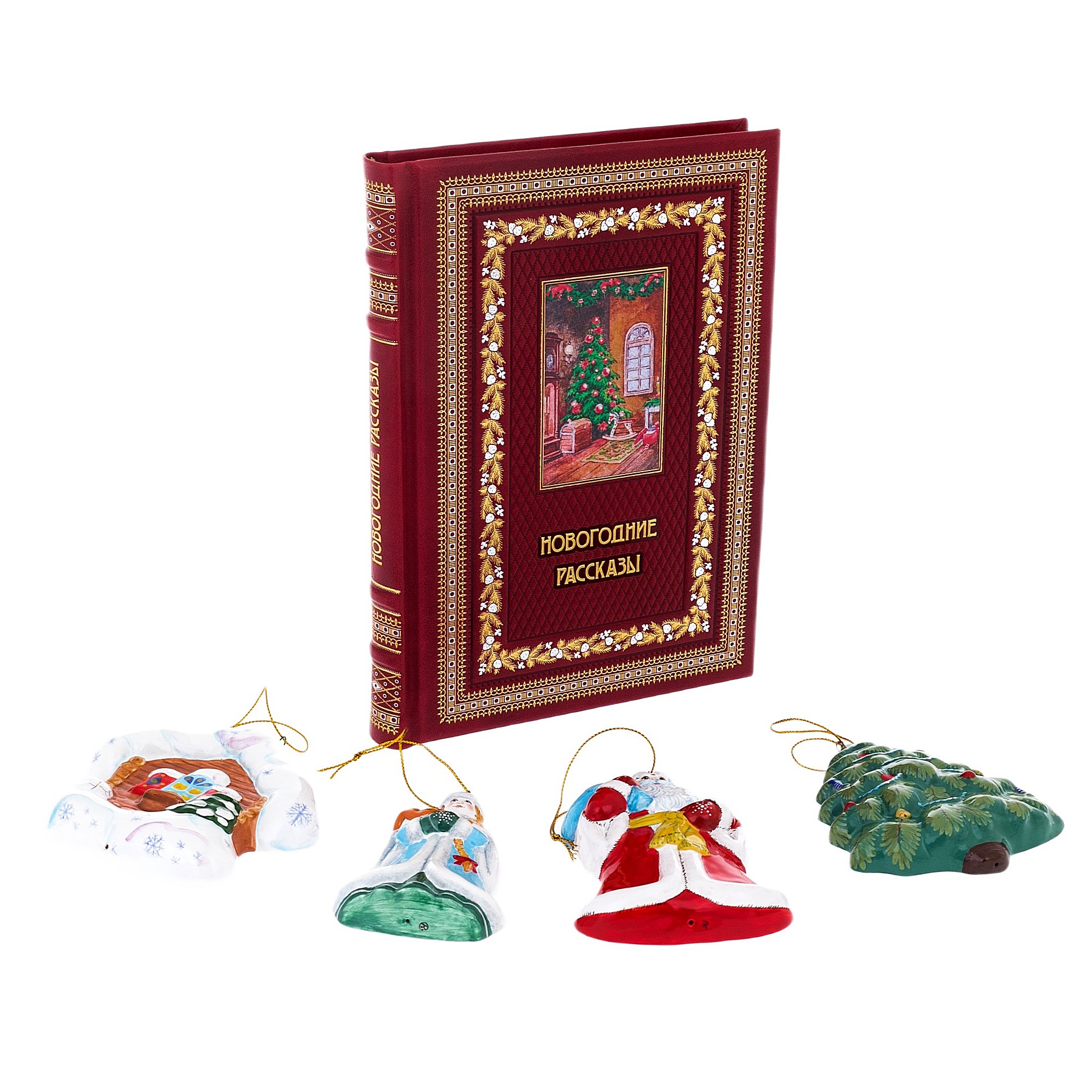 Подарочный набор "Новогодние рассказы" с книгой и майоликой 4-е игрушки