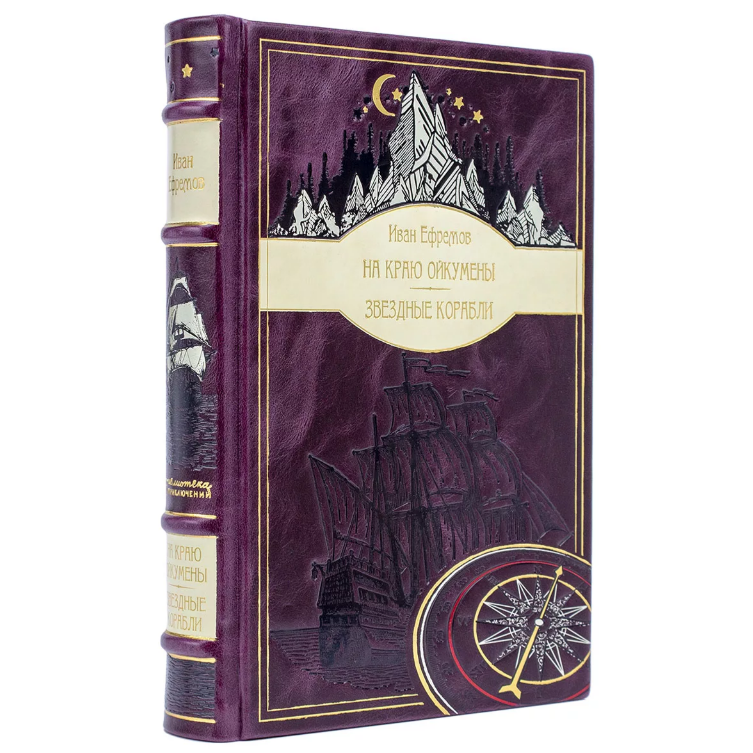 Подарочная книга в кожаном переплете Иван Ефремов "На краю Ойкумены" и "Звездные корабли"