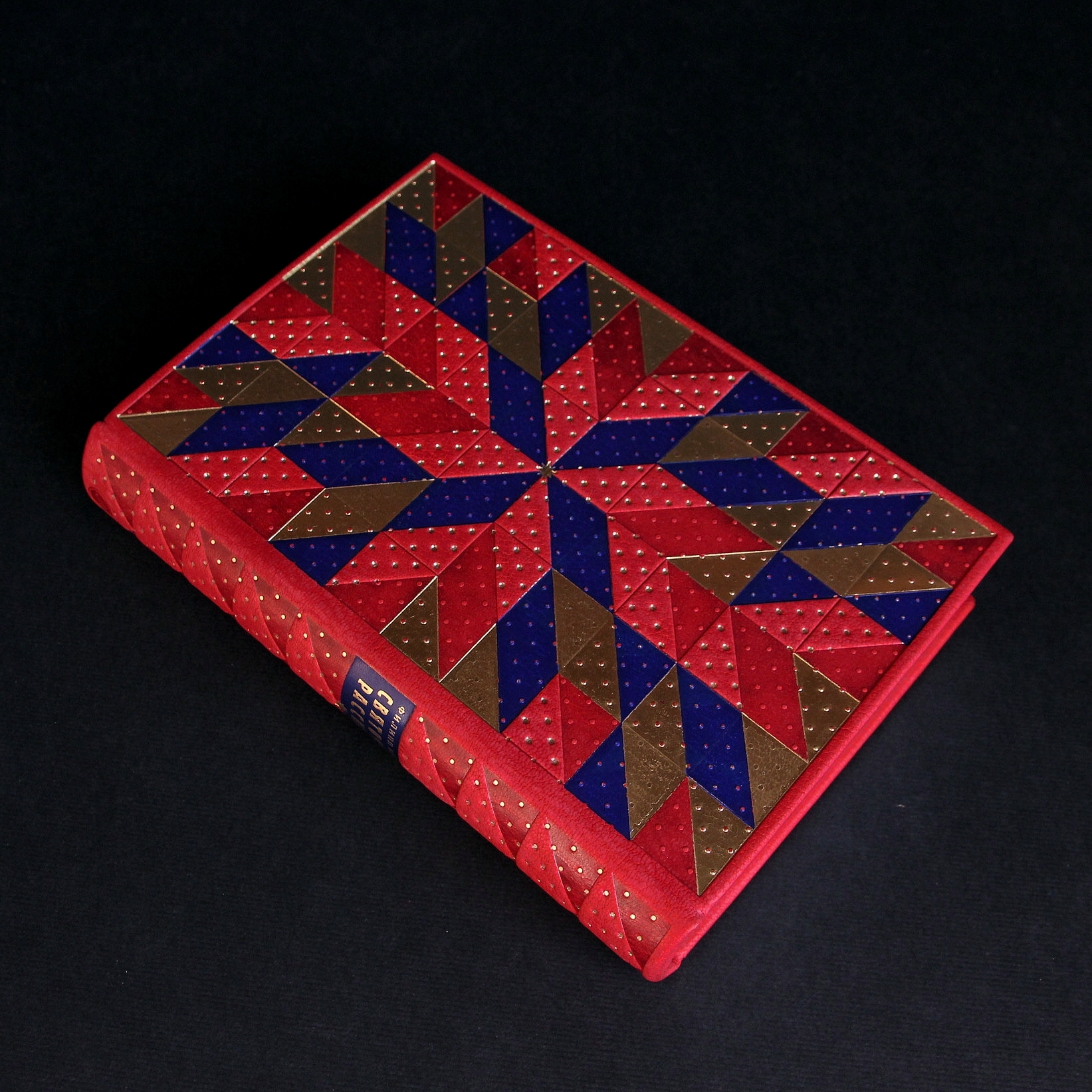 Особенности:Шелковые каптал и ляссе, форзацы из дизайнерской бумаги, переплет украшен блинтовым тиснением, тиснением золотой и пигментной фольгой.