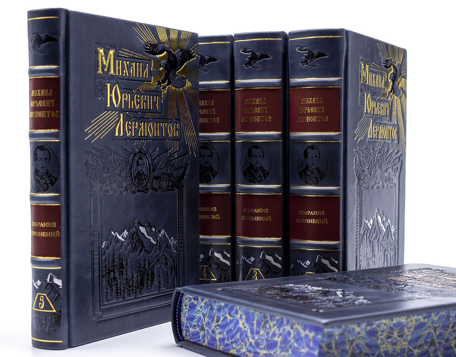 Подарочная книга в кожаном переплете "Собрание сочинений М. Ю. Лермонтова 5 томов"