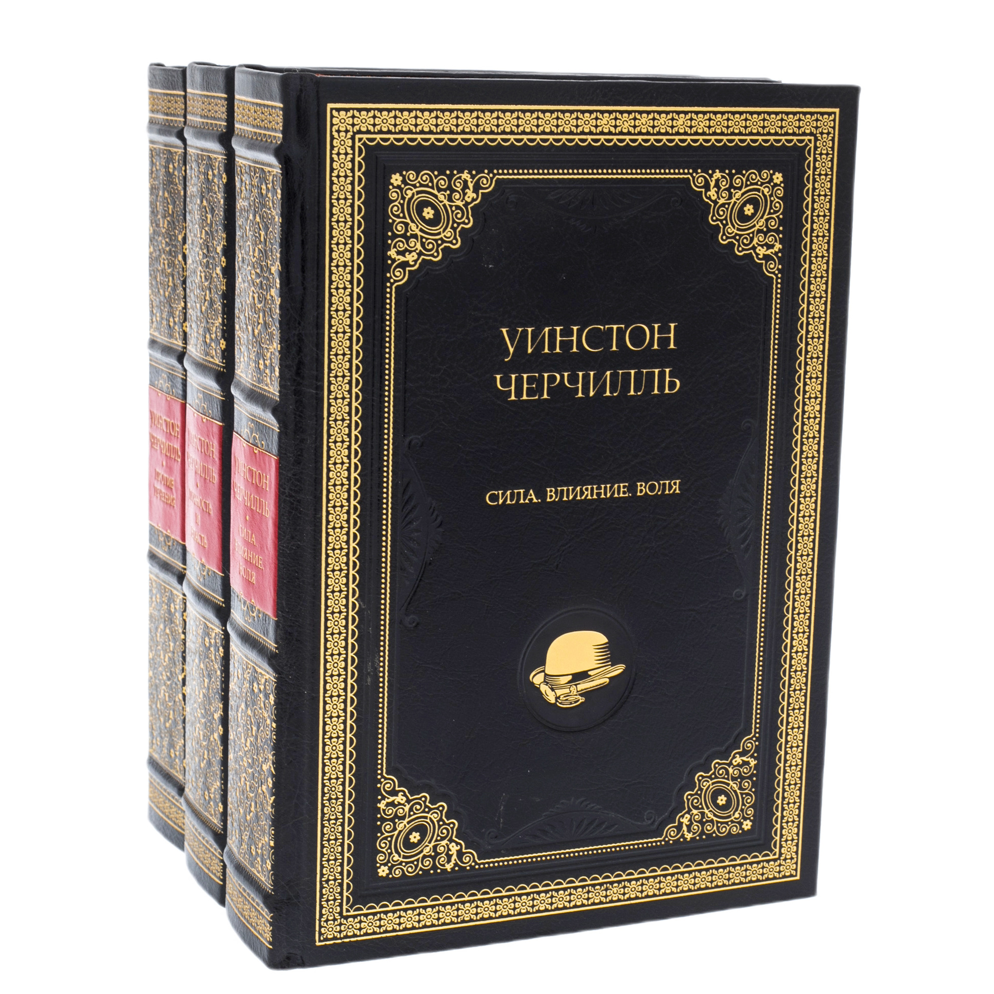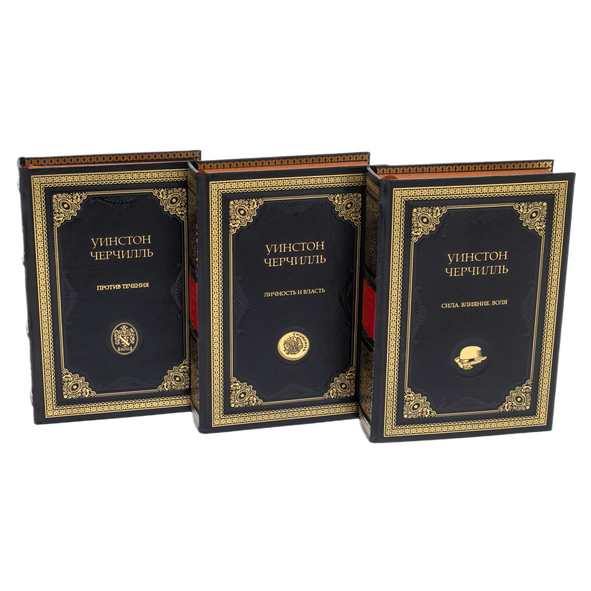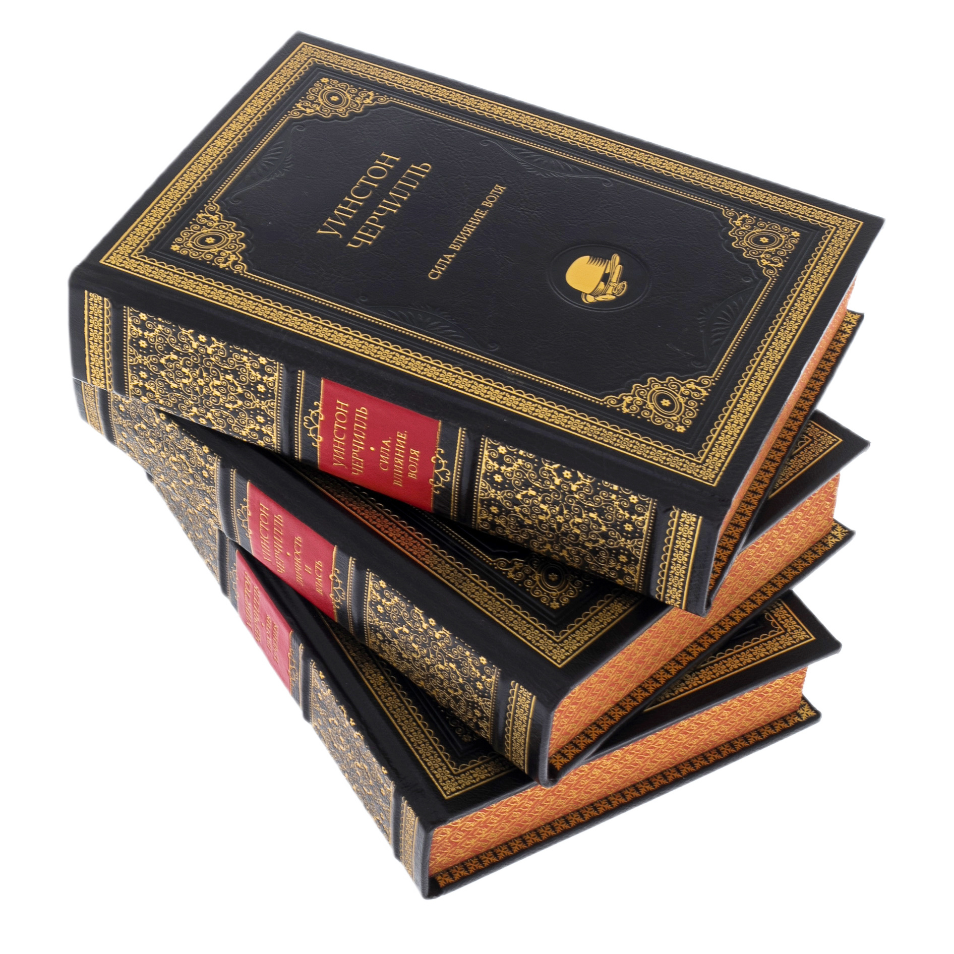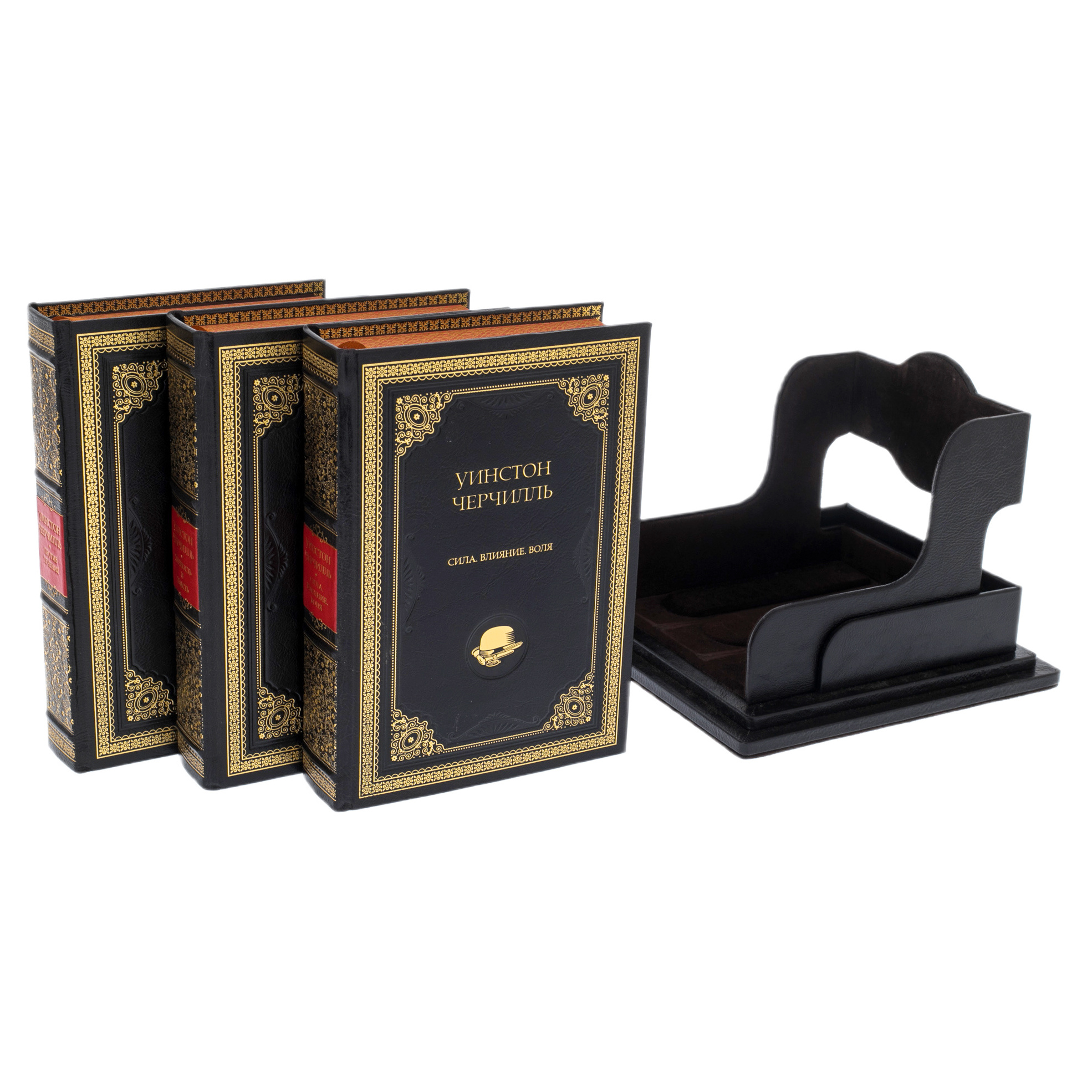 Книги в кожаном переплете "Уинстон Черчилль" в 3 томах, на подставке
