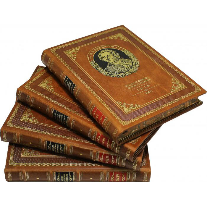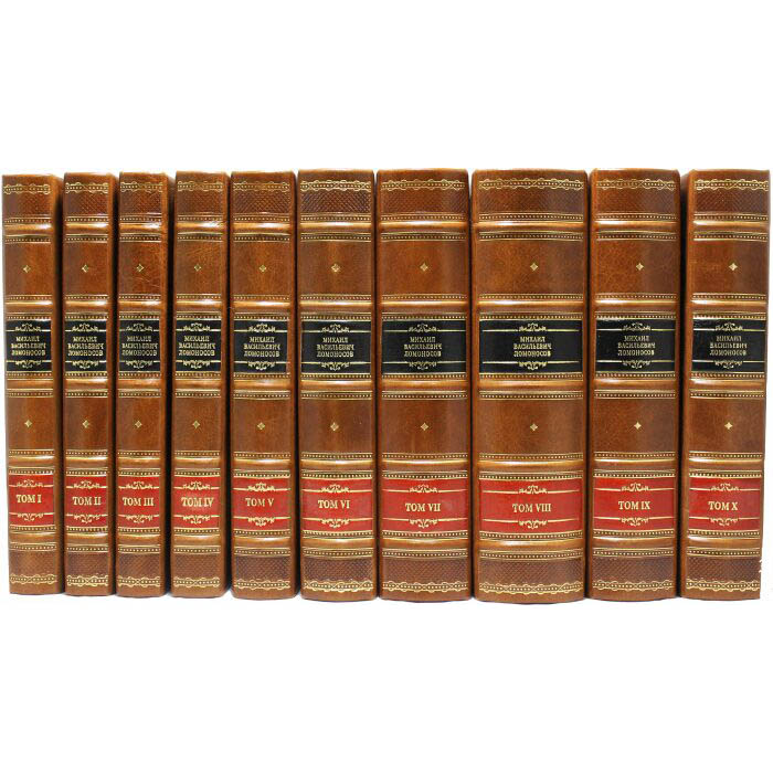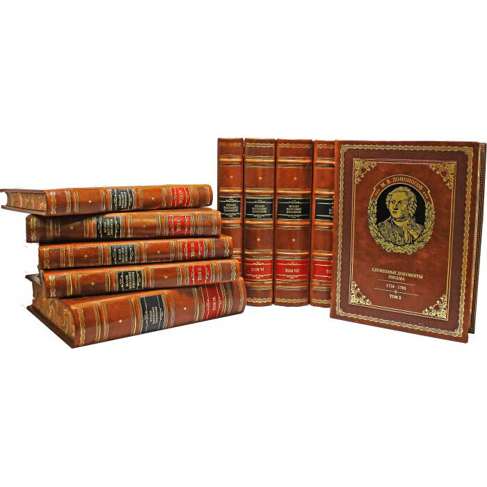 Книги в кожаном переплете "Ломоносов М.В. Полное собрание сочинений" в 10 томах
