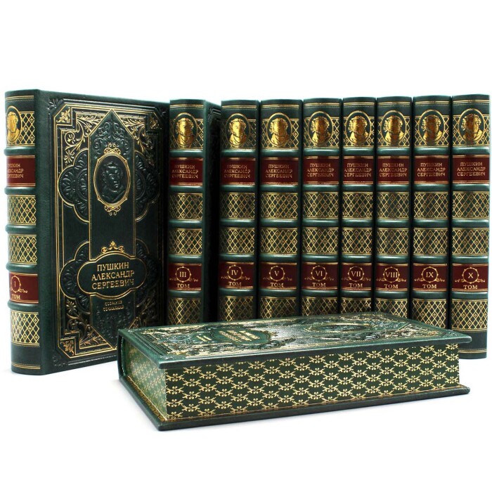 Десятитомное собрание сочинений А. С. Пушкина, подарочное издание является одним из наиболее полных и представительных среди не академических собраний сочинений. В него вошли, помимо самых популярных и любимых стихотворений, поэм, романов и повестей, ранние стихи поэта, его незавершенные произведения и отрывки ранних редакций всем знакомых шедевров, а также исторические статьи и большое эпистолярное наследие великого гения, в том числе его воспоминания о современниках и интереснейшие пометки, которые он оставлял при чтении книг.