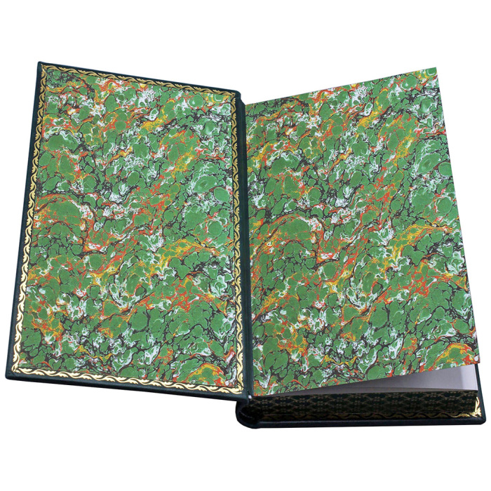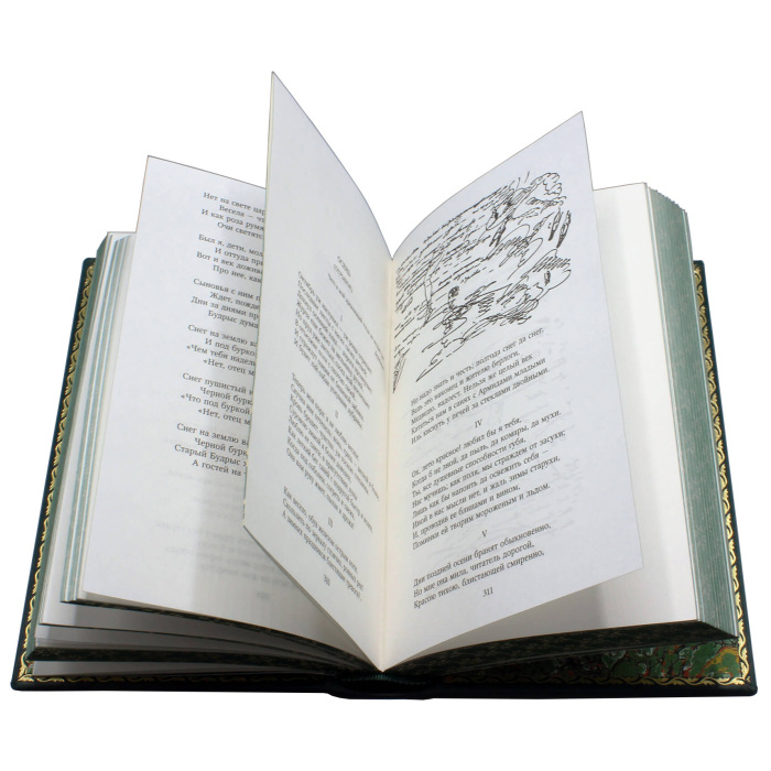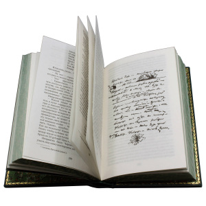 Особенности оформления:цельнокожаный переплет ручной работы; дизайн прекрасно сочетает в себе золотое, блинтовое и цветное тиснение, крашенный обрез с золотым узором; офсетная бумага.
