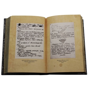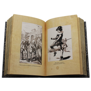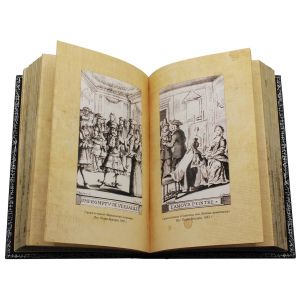 Исполнение:отпечатано на немецкой бумаге OZON IVORY представительского класса. Оформление: французский цельнокожаный переплет из натуральной кожи «Пулл-ап». Обложка каждого тома оформлена в индивидуальном дизайне, согласно тематике содержания. Обрезы книжного блока вручную отшлифованы и окрашены с нанесением узора. Форзац из мраморной бумаги разделен слезурой из кожи.