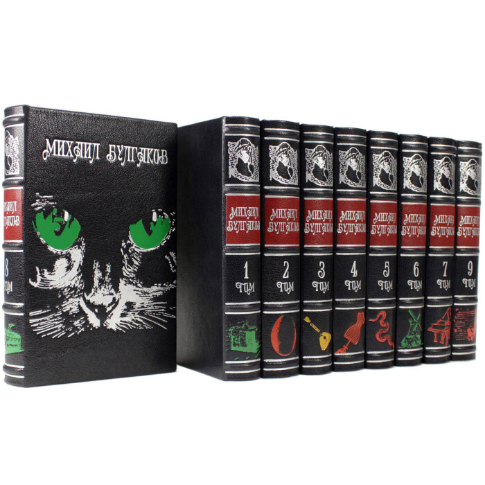 Подарочное собрание сочинений в 10 томах одного из самых гениальных писателей Михаила Булгакова. Кожаный ручной переплет в историческом французском стиле. Шагреневая кожа, цветное и серебряное тиснение, тонированный блок страниц с тематическим узором. Одна из лучших работ нашей переплетной мастерской и издательства. Оформление содержания имеет специально разработанный для данного собрания сочинений оригинальный дизайн. Превосходный подарок для ценителей книг