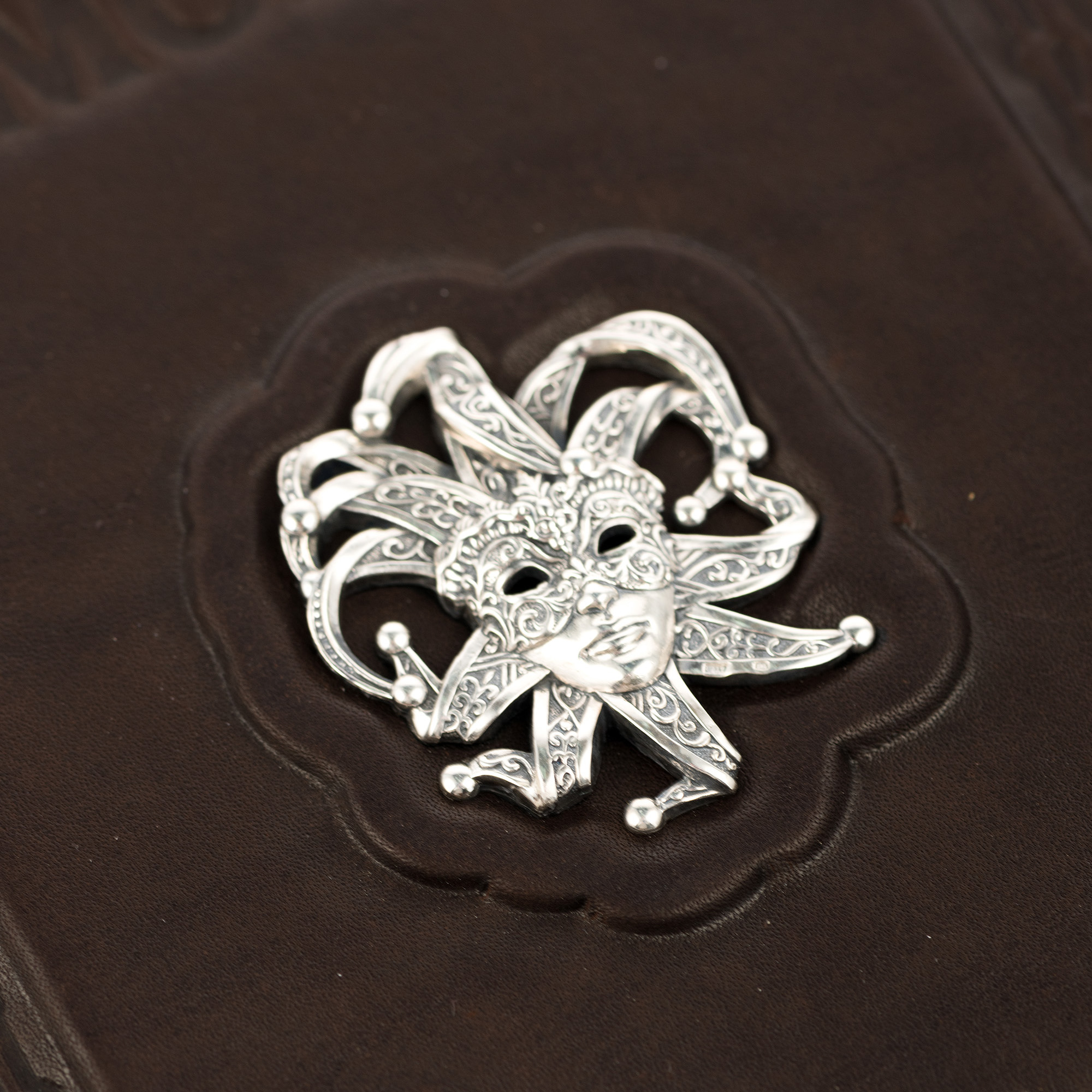 Исполнение:кожа натурального дубления с сохраненной естественной фактурой, блок украшен трехсторонним золотым обрезом, серебряная накладка на обложке.