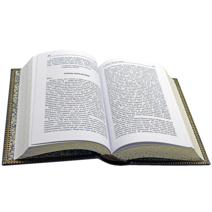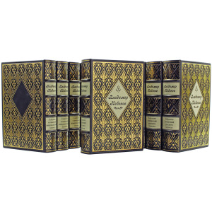 Шикарный подарочный десятитомник представлен в классическом переплете, изобретенном в XVII-XVIII веках. Сочетание блинтового и золотого тиснения, выполненных на высококачественной натуральной коже, придают невероятный визуальный эффект. Дизайн дополнен крашенным в тон переплетного материала обрезом. Ляссе.