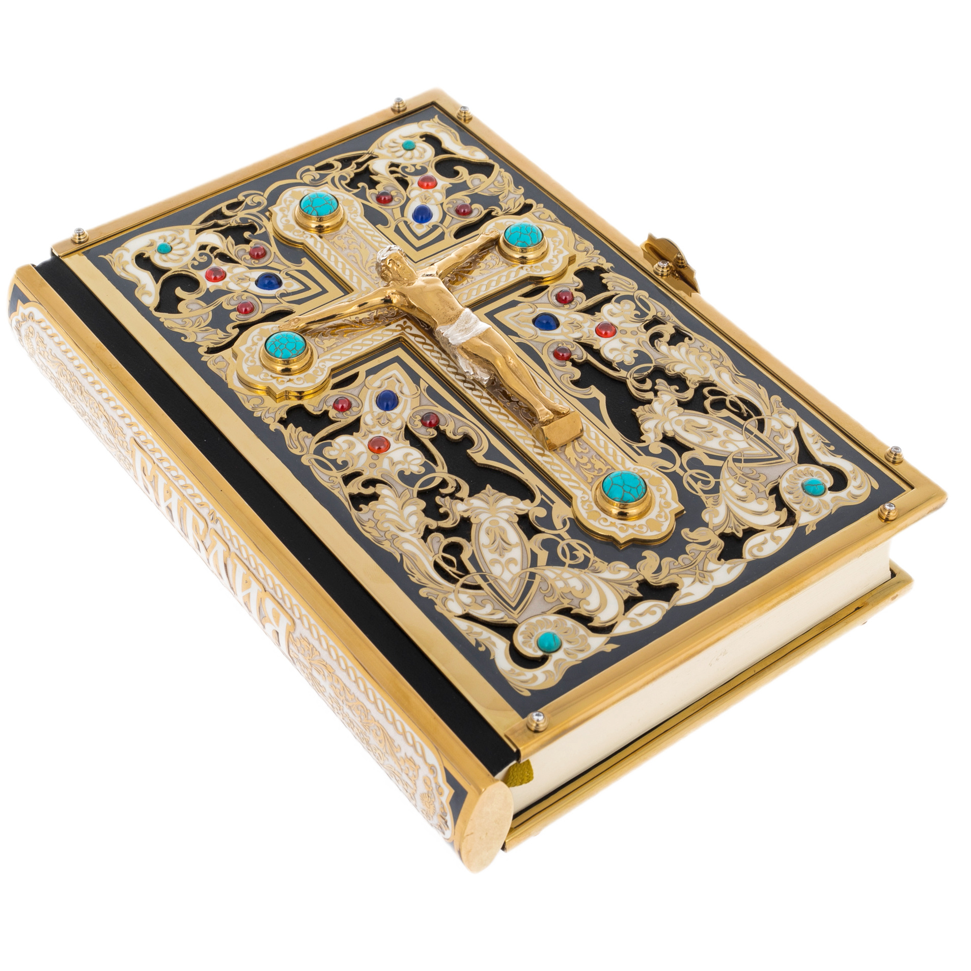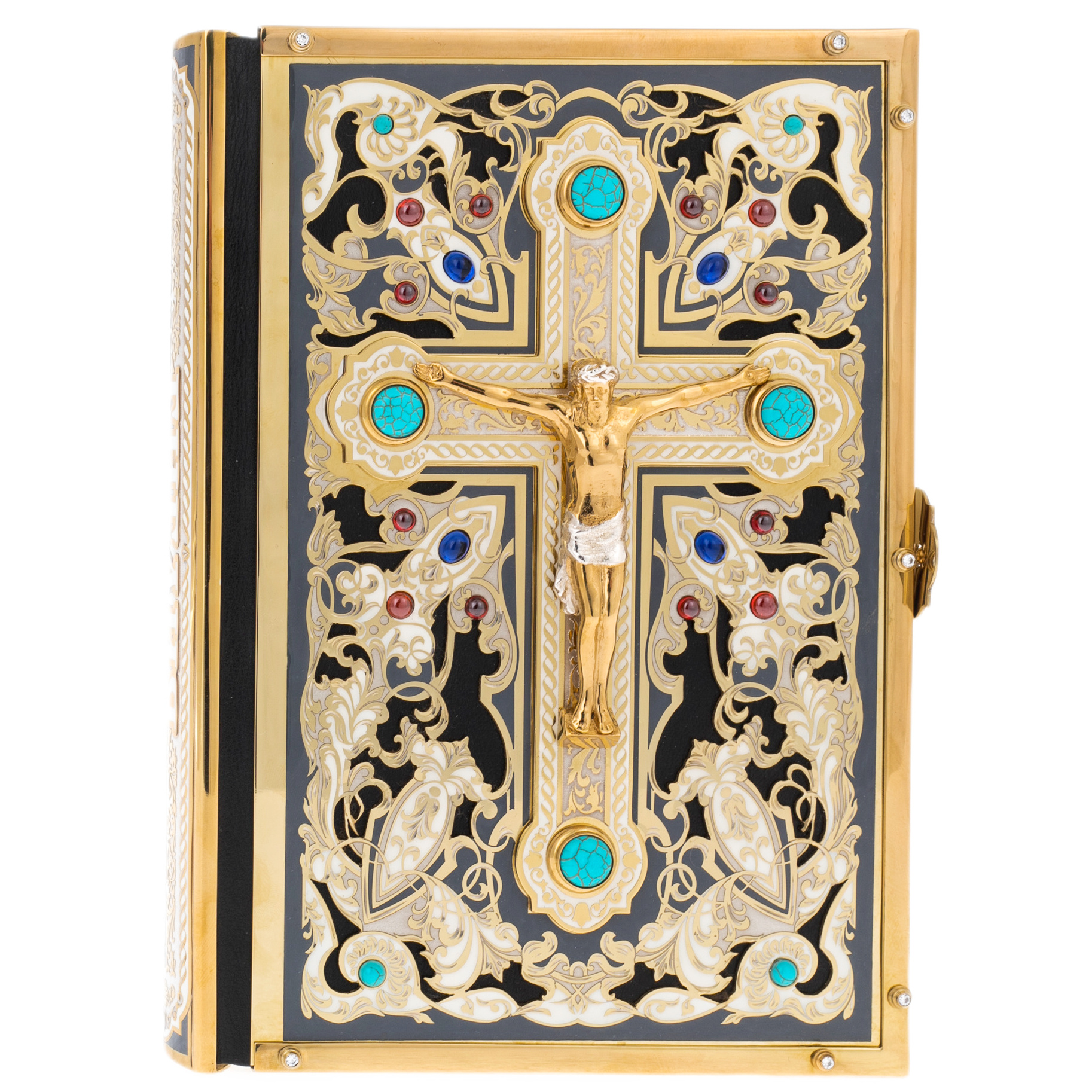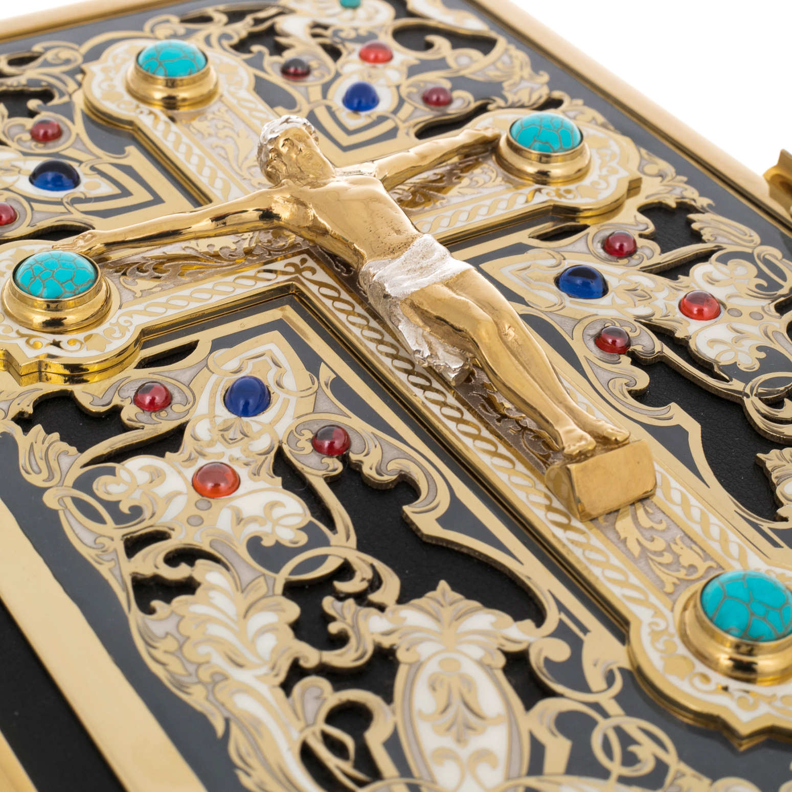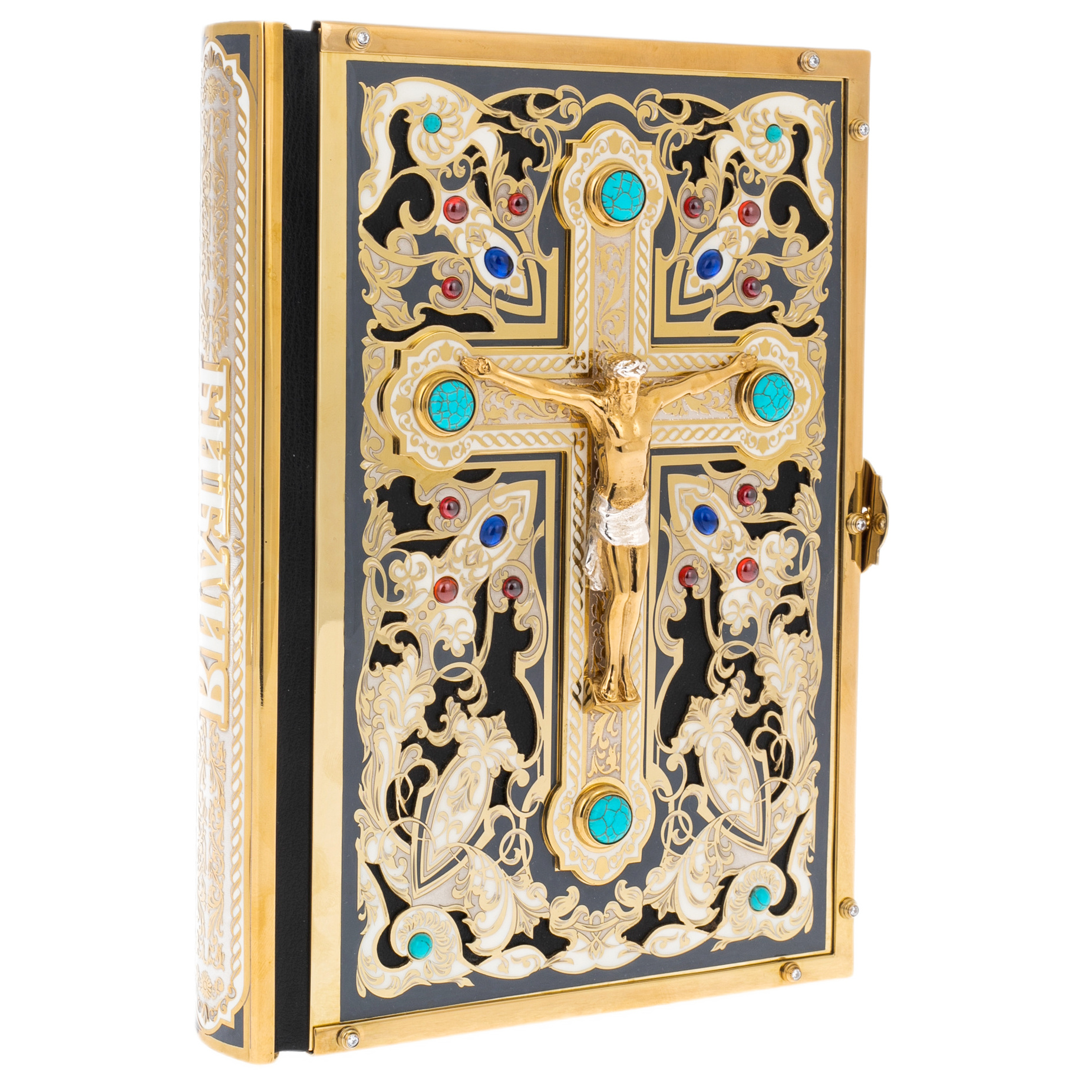 Библия "Распятие" с бирюзой и эмалями, Златоуст