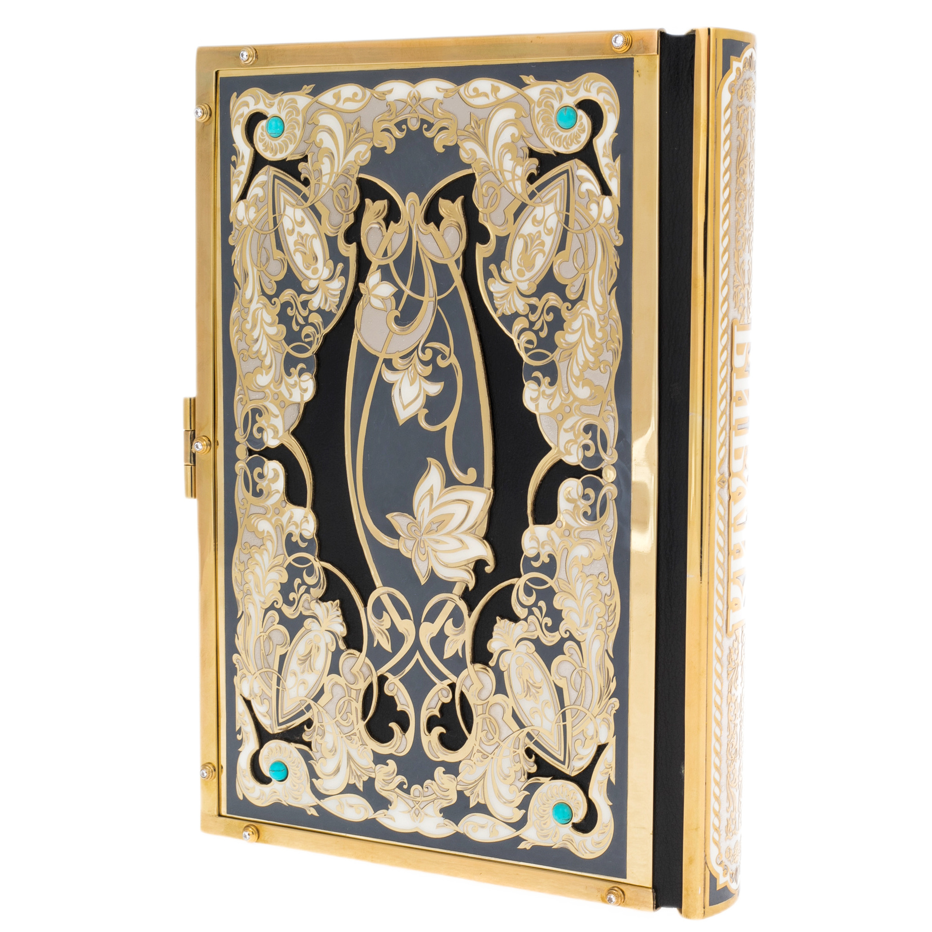 Представляем вашему вниманию величайший шедевр книжного искусства — Библию, изготовленную в уникальной златоустовской технике и украшенную сияющими фианитами. Этот великолепный экземпляр воплощает в себе сочетание духовного наследия и высочайшего мастерства ремесленников, создавая неповторимое произведение, которое станет истинным украшением любой коллекции и бесценным даром.