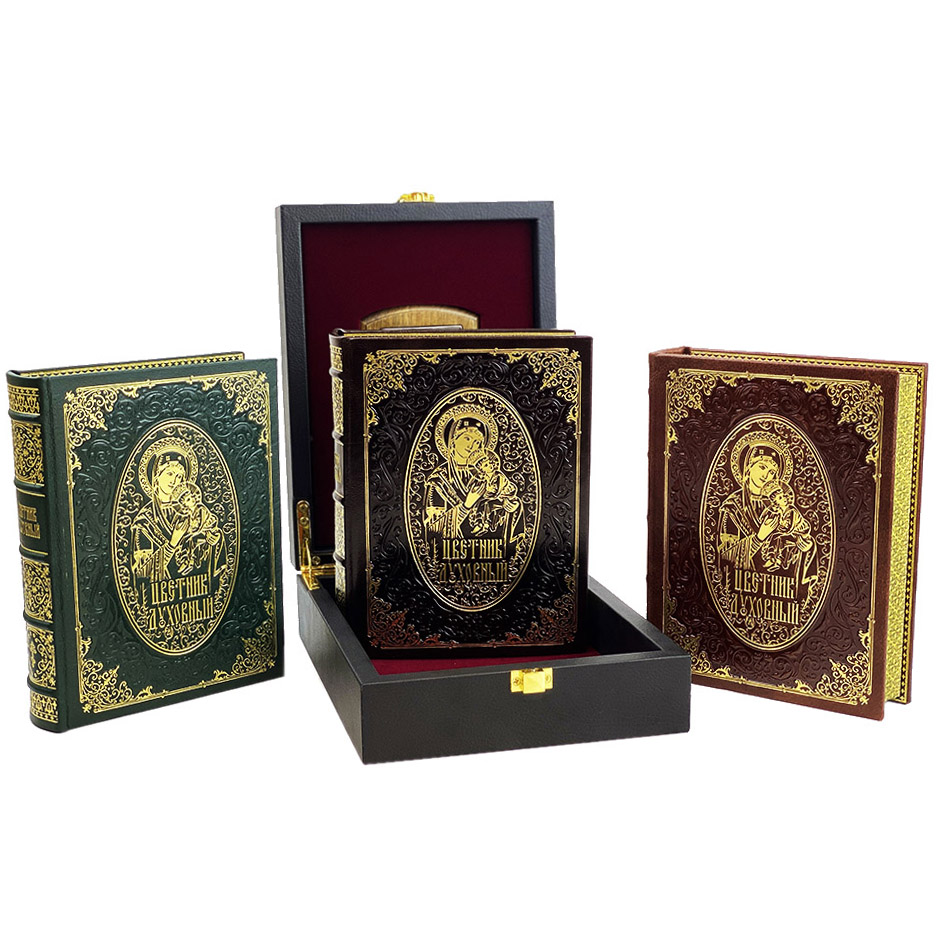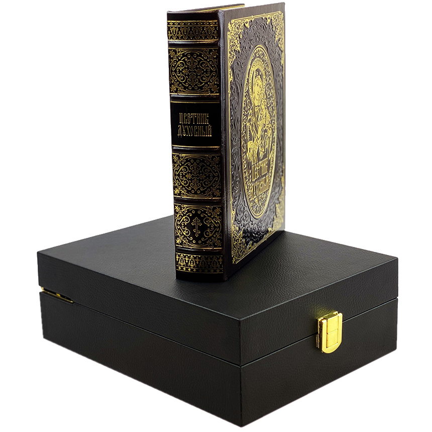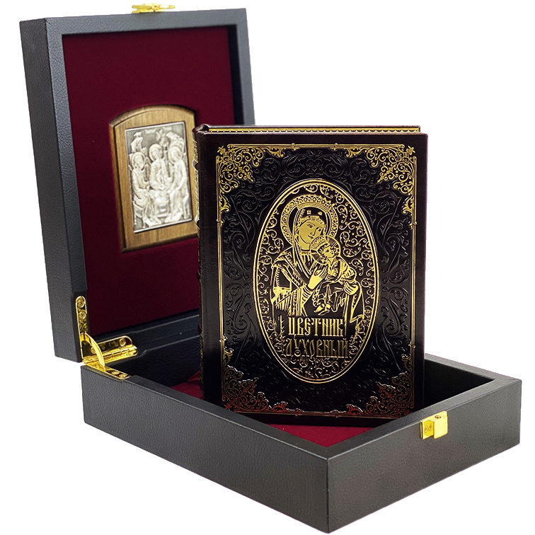 Книга в кожаном переплете "Цветник духовный" с иконой Святая Троица