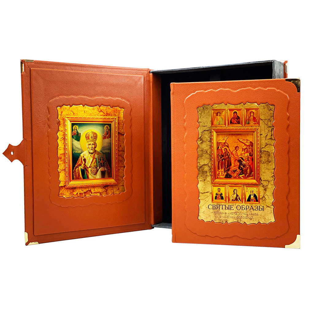 Книга в кожаном переплете "Святые образы. Русские иконы XV - XX веков из частных собраний" в коробе