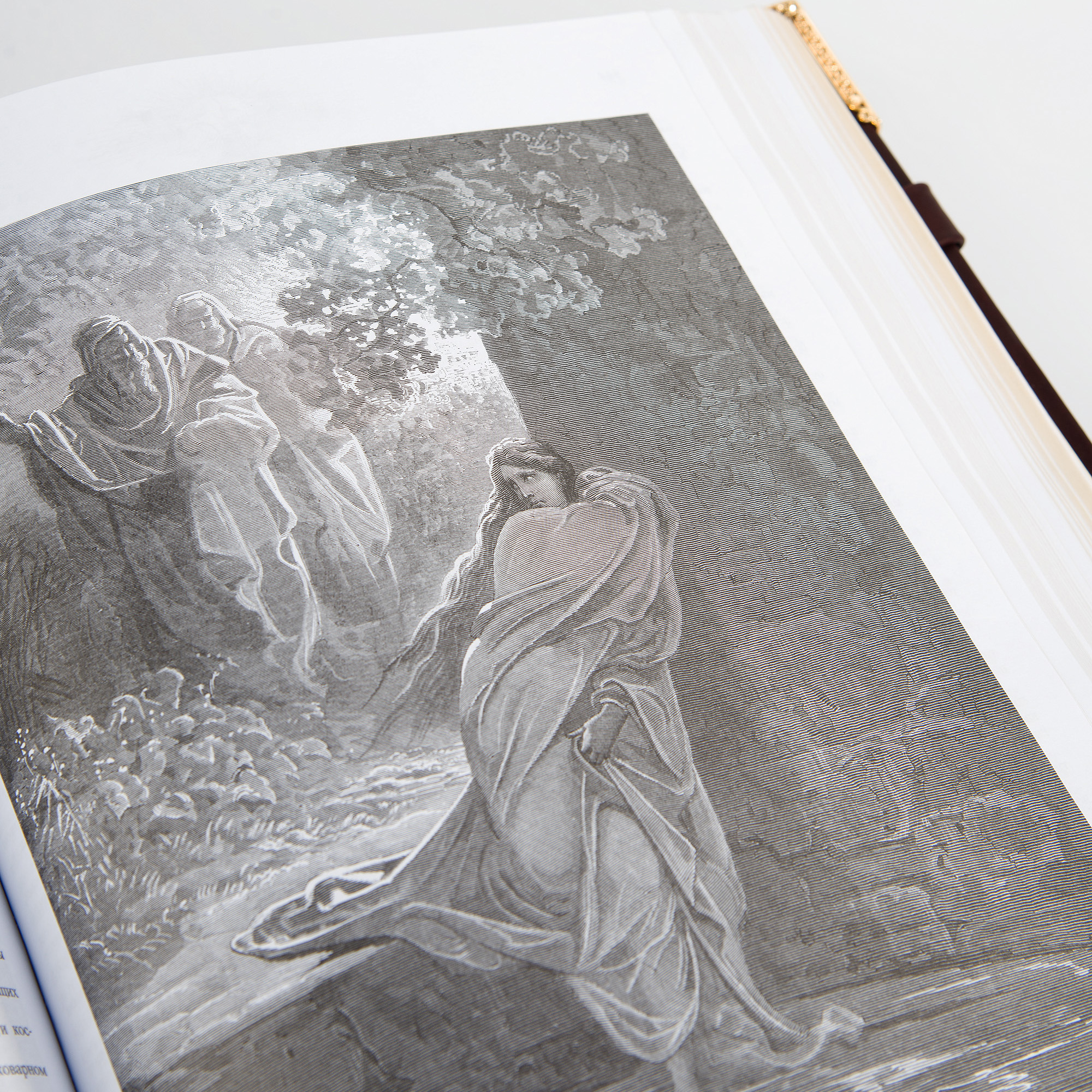 Особенности оформления: переплет книги изготовлен вручную из телячьей кожи натурального дубления с сохраненной естественной фактурой. Крупный текст. Гравюры Доре.