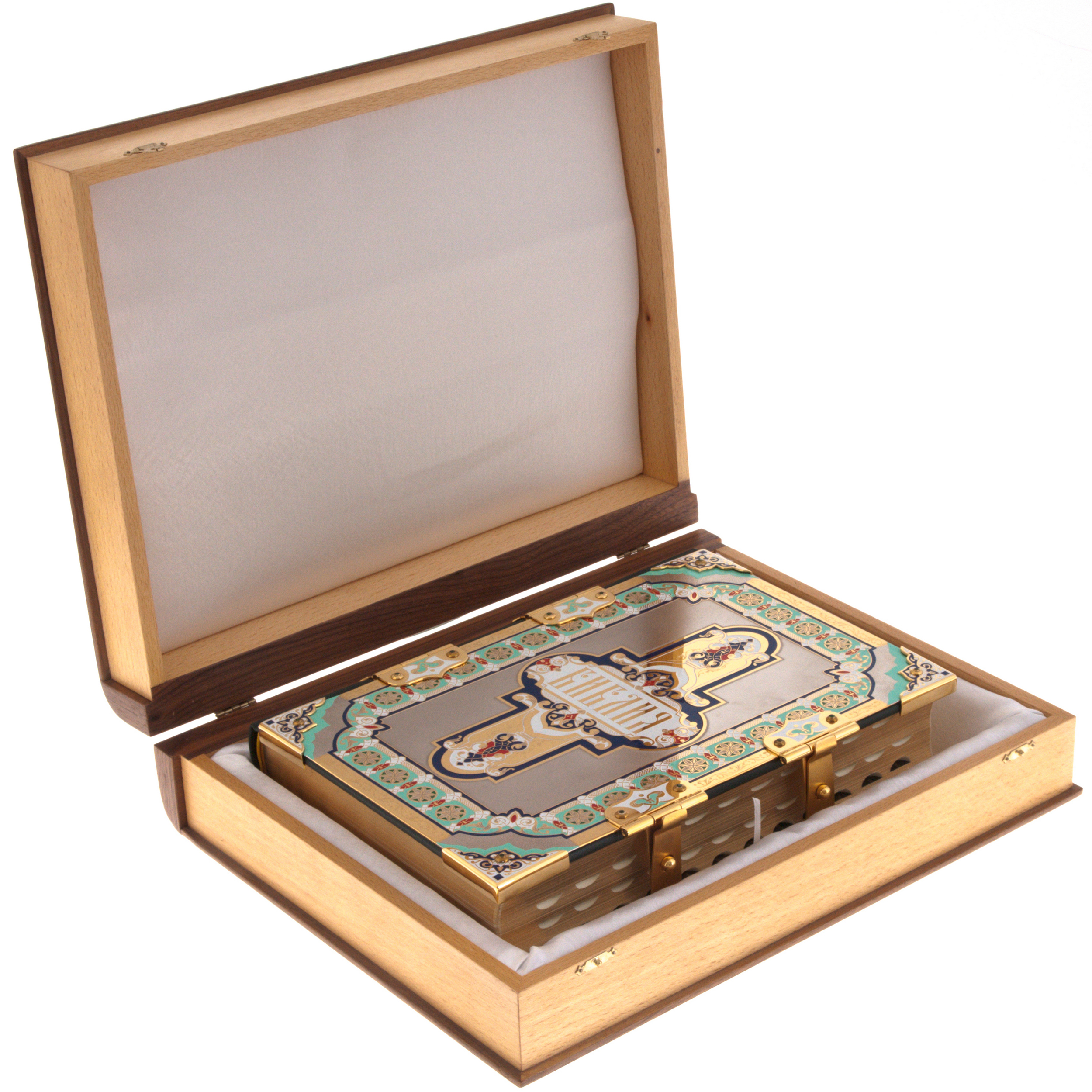 Издание поставляется в коробе из натурального дерева, выполненном по итальянской технологии. При желании на шильде можно выгравировать библейскую цитату или дарственную надпись.