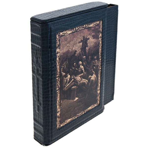 Стильно оформленное подарочное издание в кожаном переплете с трехсторонним золотым обрезом. "Разными путями Бог открывает нам Свою любовь и истину — как через вечное живое Слово Свое, так и через непосредственное, личное общение с Ним в молитве прославления, благодарения и прощения. Блаженны слушающие и читающие Слово Божие. Оно вдохновило многих художников иллюстрировать Библию, передать читателям свое восприятие Божественного откровения. Перед нами книга Священного Писания с 230 иллюстрациями французского художника Гюстава Доре, выполненными в 1864 — 1866 годах. Изящно исполненные гравюры живыми картинами раскрывают перед нашим взором многовековую библейскую историю Ветхого и Нового Заветов: от сотворения мира до Откровения Иоанна. Мы видим образы великих мужей веры, пророков и апостолов, наглядно отображенную историю Израиля и прослеживаем Божий план спасения человечества через Сына Божьего, Иисуса Христа. С благодарностью Господу за возможность нового издания этой книги мы вручаем ее ищущим Бога и твердо верим, что она еще многим из них укажет путь истины и света".