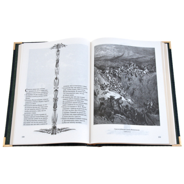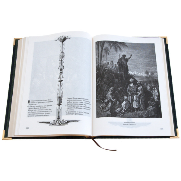 Книга в кожаном переплете "Библия в гравюрах Гюстава Доре"Книга в кожаном переплете "Библия в гравюрах Гюстава Доре""Разными путями Бог открывает нам Свою любовь и истину — как через вечное живое Слово Свое, так и через непосредственное, личное общение с Ним в молитве прославления, благодарения и прощения. Блаженны слушающие и читающие Слово Божие. Оно вдохновило многих художников иллюстрировать Библию, передать читателям свое восприятие Божественного откровения. Перед нами книга Священного Писания с 230 иллюстрациями французского художника Гюстава Доре, выполненными в 1864 — 1866 годах. Изящно исполненные гравюры живыми картинами раскрывают перед нашим взором многовековую библейскую историю Ветхого и Нового Заветов: от сотворения мира до Откровения Иоанна. Мы видим образы великих мужей веры, пророков и апостолов, наглядно отображенную историю Израиля и прослеживаем Божий план спасения человечества через Сына Божьего, Иисуса Христа. С благодарностью Господу за возможность нового издания этой книги мы вручаем ее ищущим Бога и твердо верим, что она еще многим из них укажет путь истины и света".