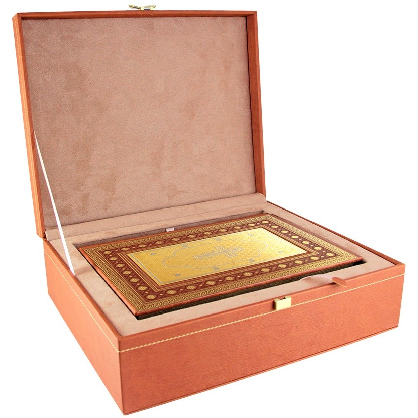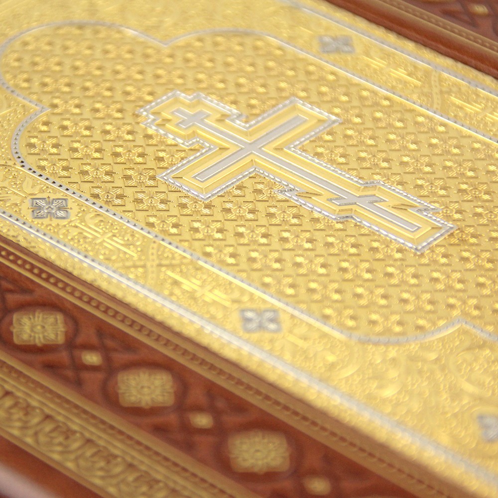 Золото, обрамляющее каждую деталь книги, напоминает о вечной истине и непроходящей ценности священного писания. Вся композиция выражает гармонию между светом духовности и силой материального мира, делая её идеальным подарком для тех, кто стремится к балансированию этих сторон жизни. Традиционные узоры и рельефные элементы на обложке отражают тысячелетнюю историю христианства и его влияние на мировую культуру, укрепляя чувство принадлежности к чему-то великому и вечному.