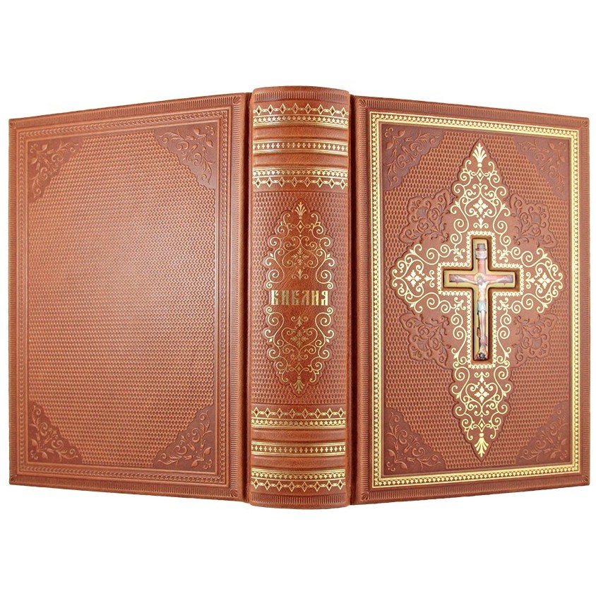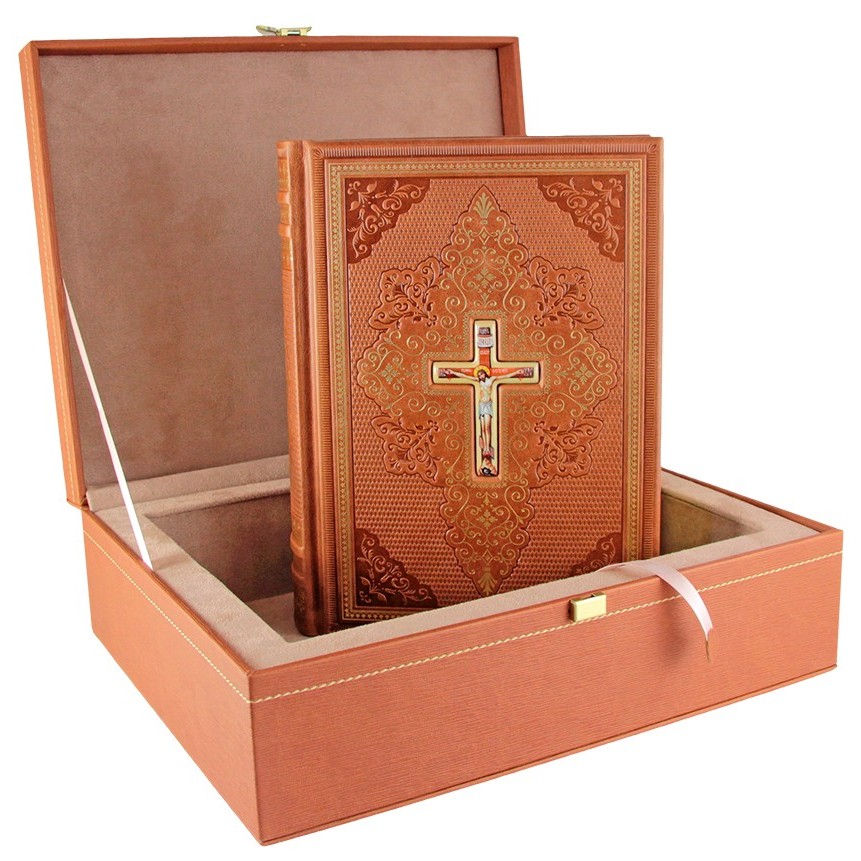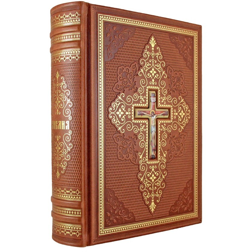 Книга в кожаном переплете "Библия. Книги Священного Писания Ветхого и Нового завета" в подарочной упаковке