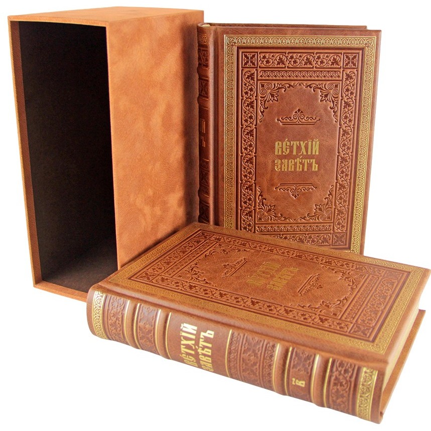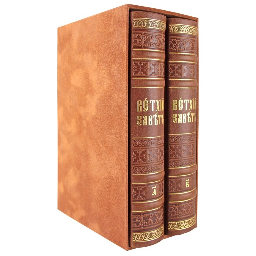 Книга в кожаном переплете "Библия. Книги Священного Писания Ветхого завета." В двух томах.