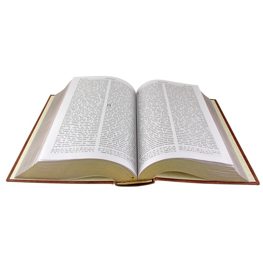 Библия на русском языке в классическом Синодальном переводе. Она издана оптимальным для использования форматом, напечатана на качественной белой бумаге, снабжена указателями ветхозаветных, евангельских и апостольских чтений в соответствии с церковным календарем. Ко всем текстам в Библии даются параллельные места – это темы и изречения, которые дословно совпадают или перекликаются с другими местами Священного Писания. У всех книг Нового Завета, кроме Апокалипсиса, на полях имеются церковные зачала, то есть отрывки, читаемые во время богослужений в церкви в течение всего года.