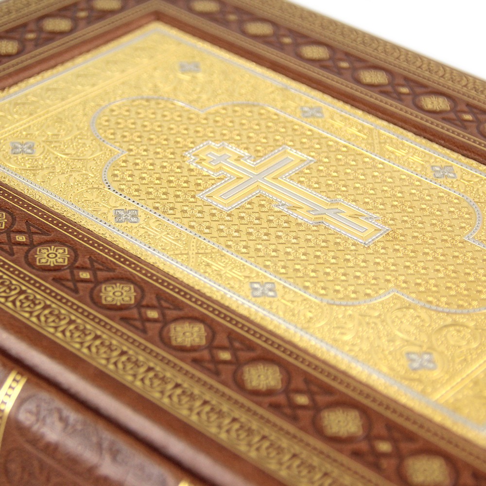 Золото, обрамляющее каждую деталь книги, напоминает о вечной истине и непроходящей ценности священного писания. Вся композиция выражает гармонию между светом духовности и силой материального мира, делая её идеальным подарком для тех, кто стремится к балансированию этих сторон жизни. Традиционные узоры и рельефные элементы на обложке отражают тысячелетнюю историю христианства и его влияние на мировую культуру, укрепляя чувство принадлежности к чему-то великому и вечному.