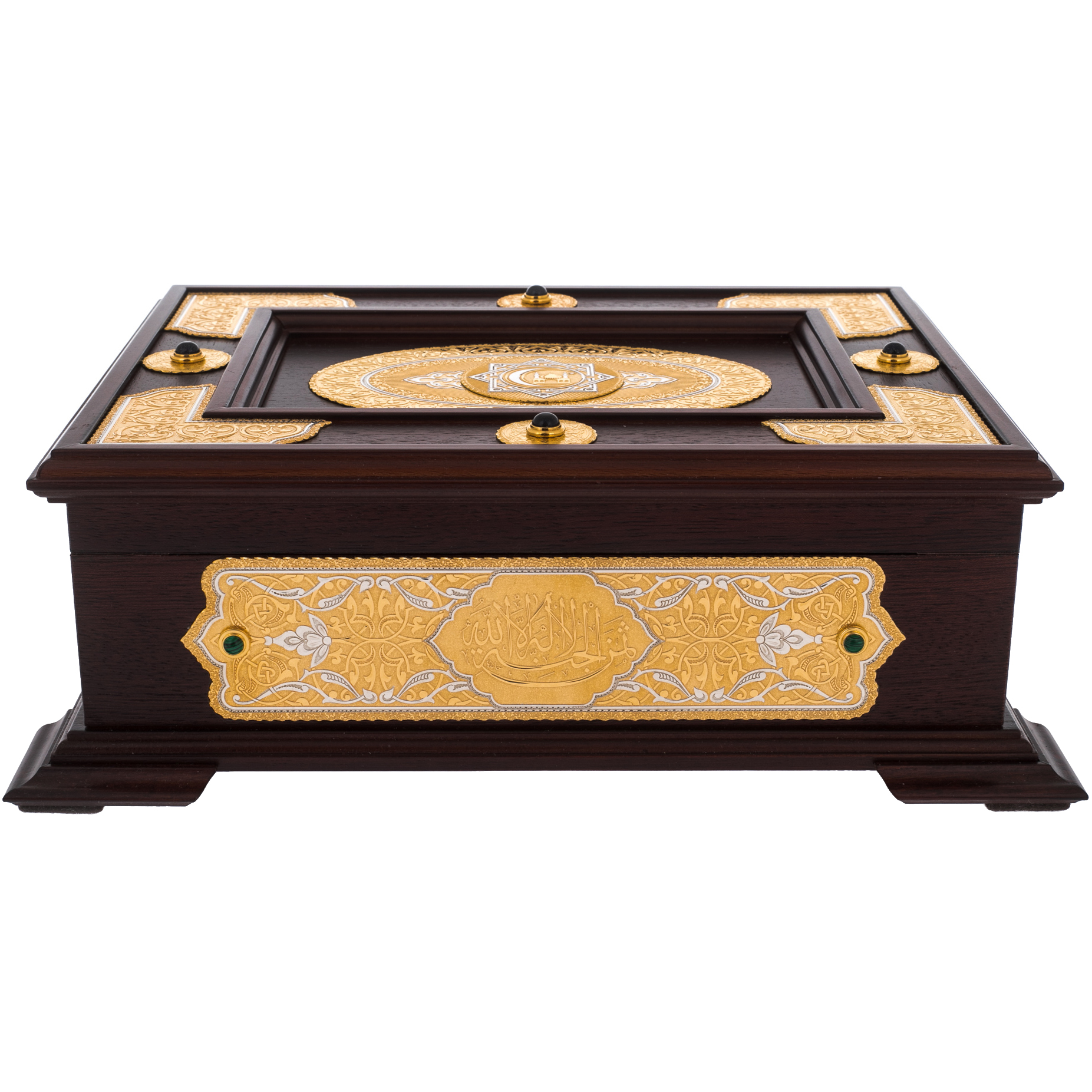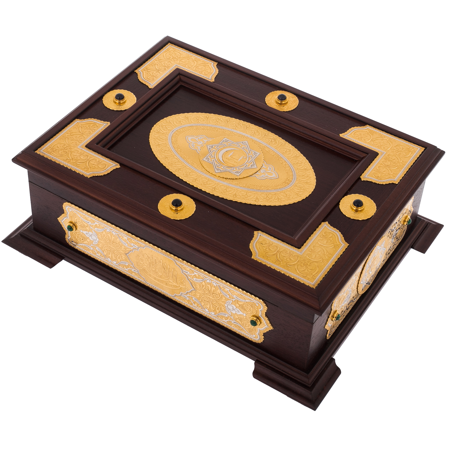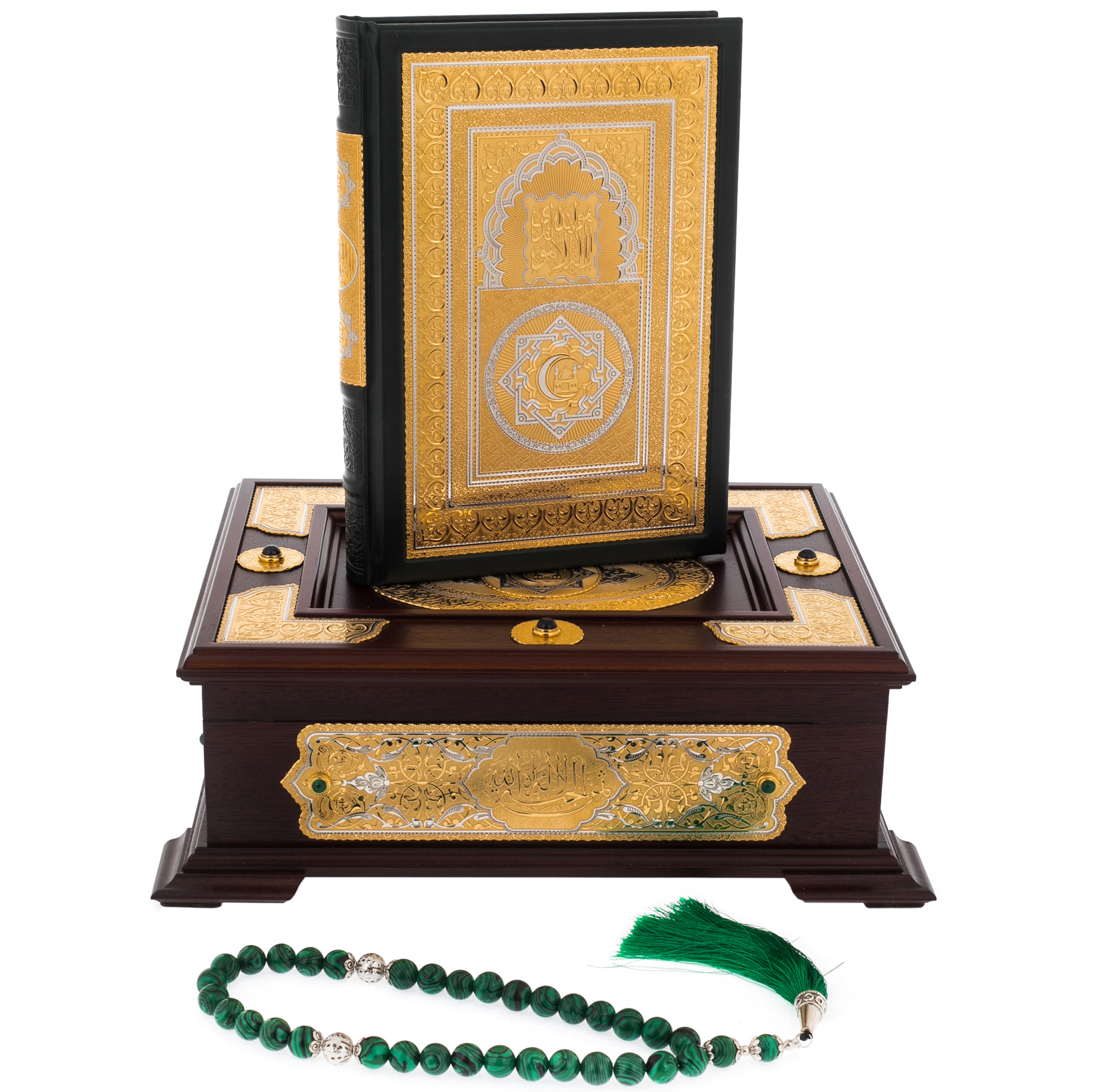 Подарочное издание Корана на арабском языке в ларце из натурального дерева станет прекрасным подарком на мусульманский праздник. Великолепие гравировки ручной работы по золоту делает экземпляр эксклюзивным, достойным стать изюминкой домашней библиотеки и ценной семейной реликвией.