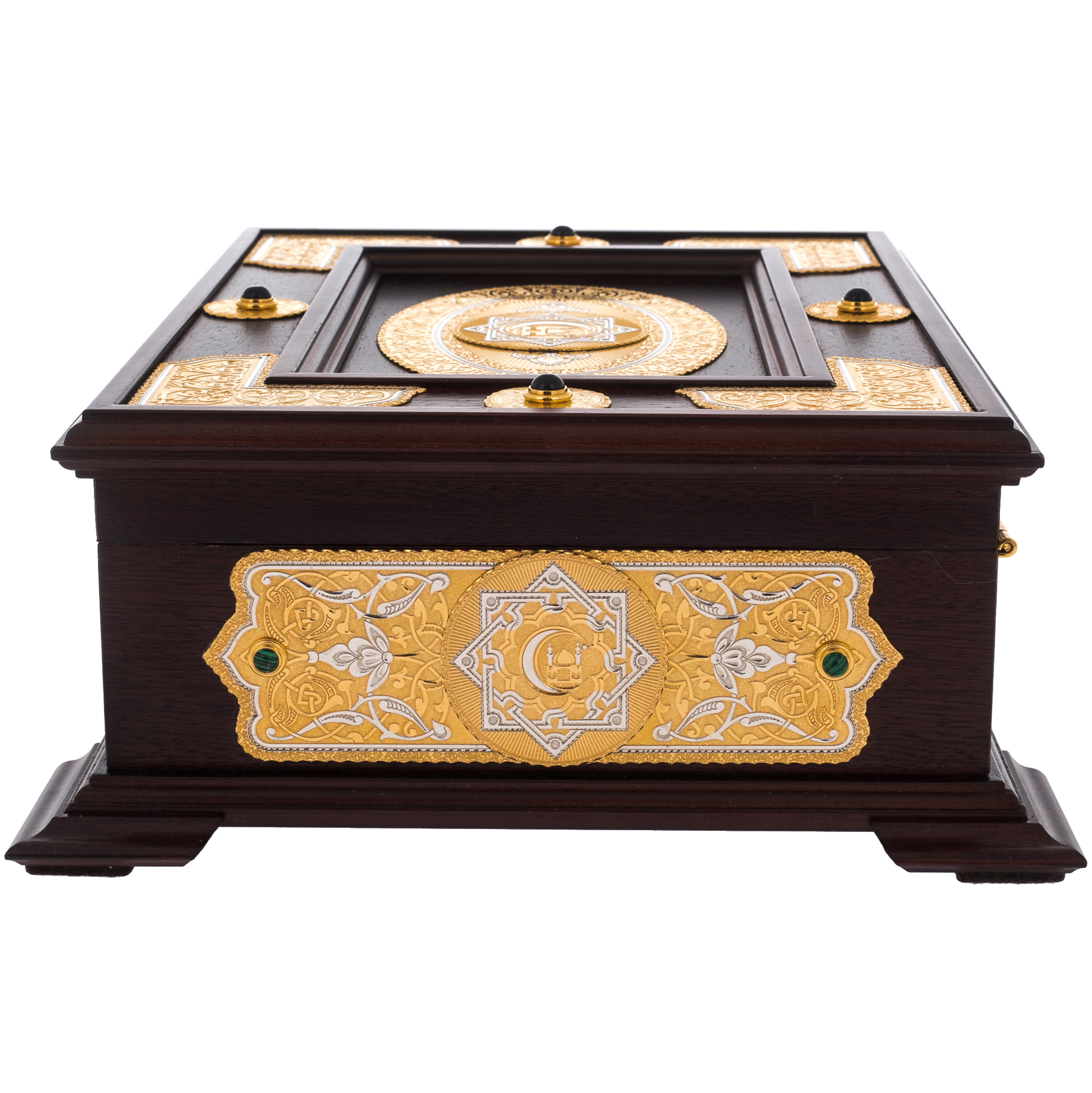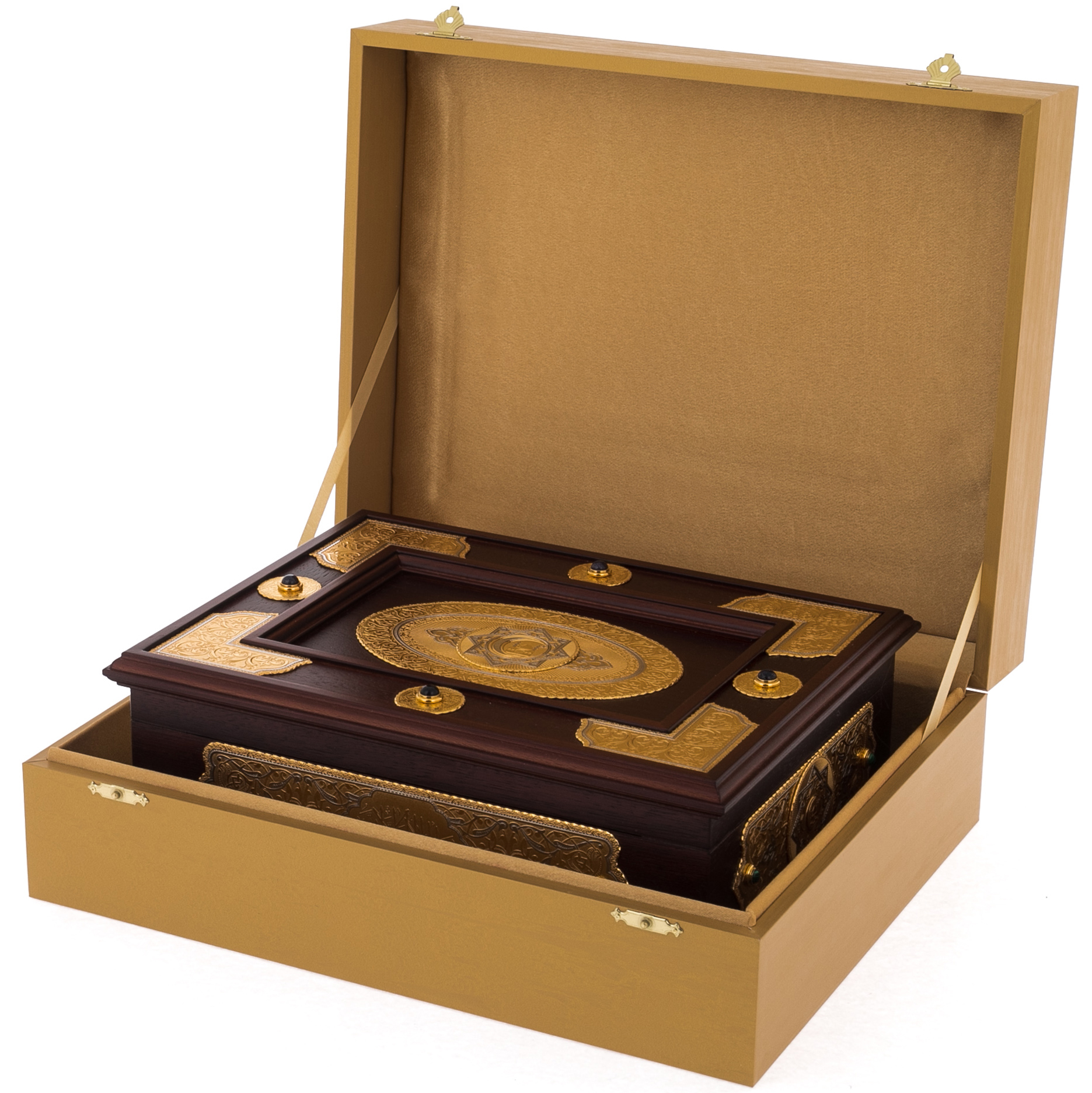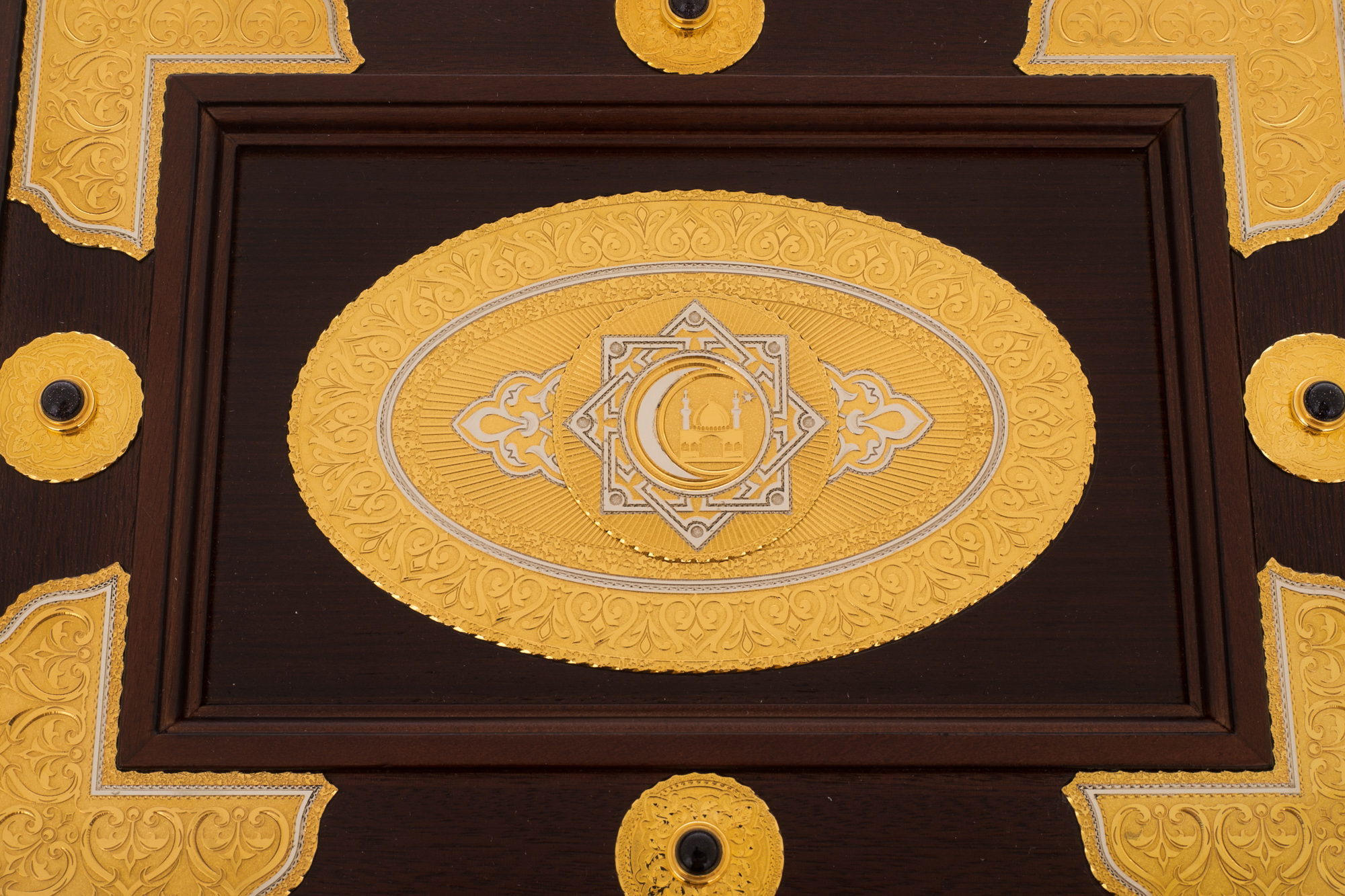 Подарочное издание Корана на арабском языке в ларце из натурального дерева станет прекрасным подарком на мусульманский праздник. Великолепие гравировки ручной работы по золоту делает экземпляр эксклюзивным, достойным стать изюминкой домашней библиотеки и ценной семейной реликвией.