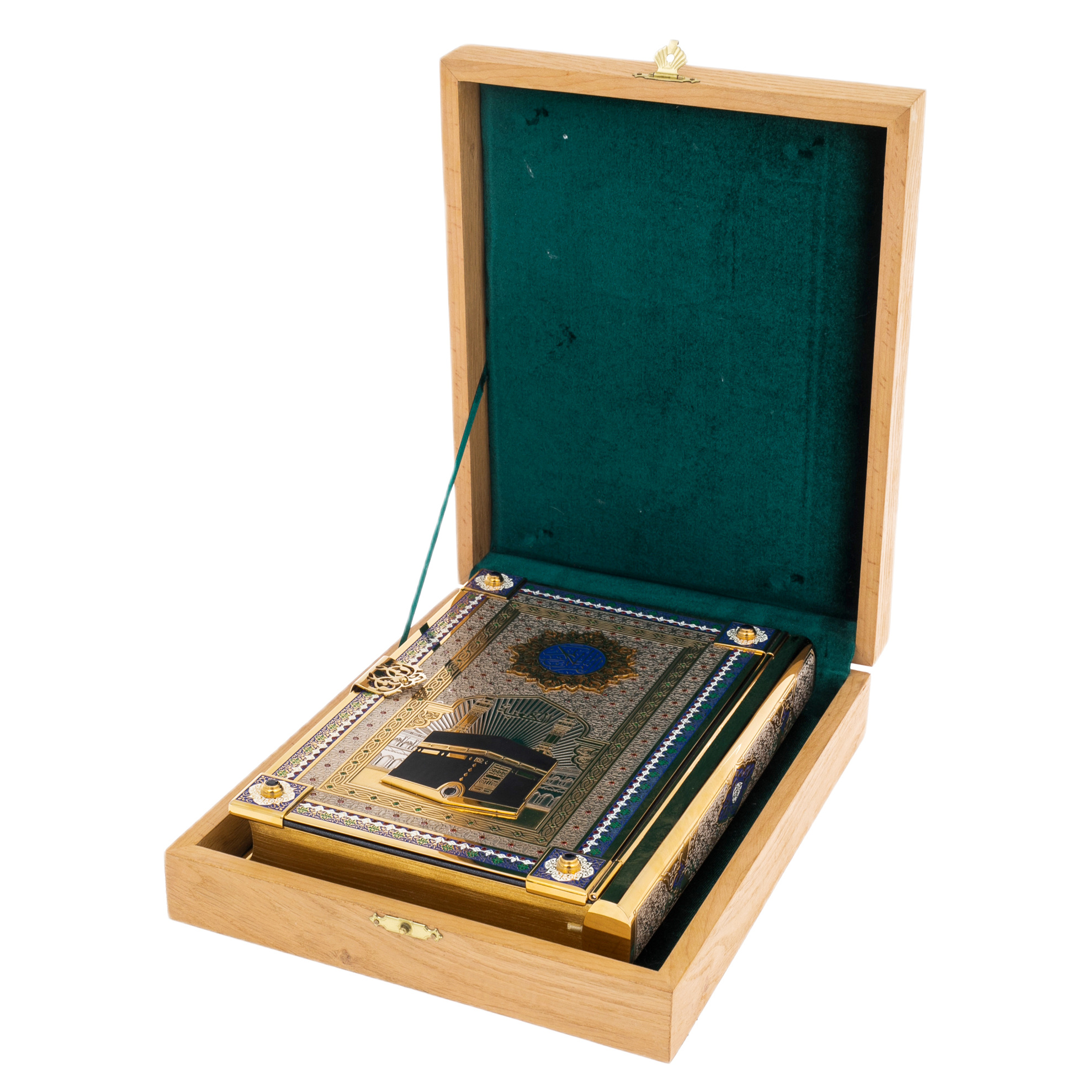 Подарочное издание Корана «Кааба» на арабском языке — это исключительное произведение искусства, объединяющее священный текст и изысканный художественный вкус. Книга оформлена в роскошном переплёте с изображением Каабы — главного символа исламской веры, что подчёркивает её особое духовное значение и торжественность.