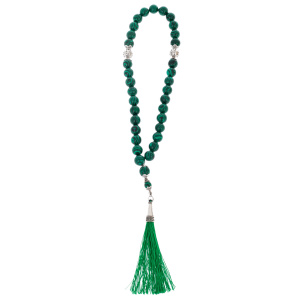 Четки из натурального малахита, входящие в комплект, дополняют этот сакральный подарок. Гладкие бусины переливаются глубокими зелеными оттенками, символизируя жизненную энергию и вечную силу природы. Зеленая шёлковая кисть завершает гармоничный образ, словно заключая молитвенные мысли в мягкую петлю времени.