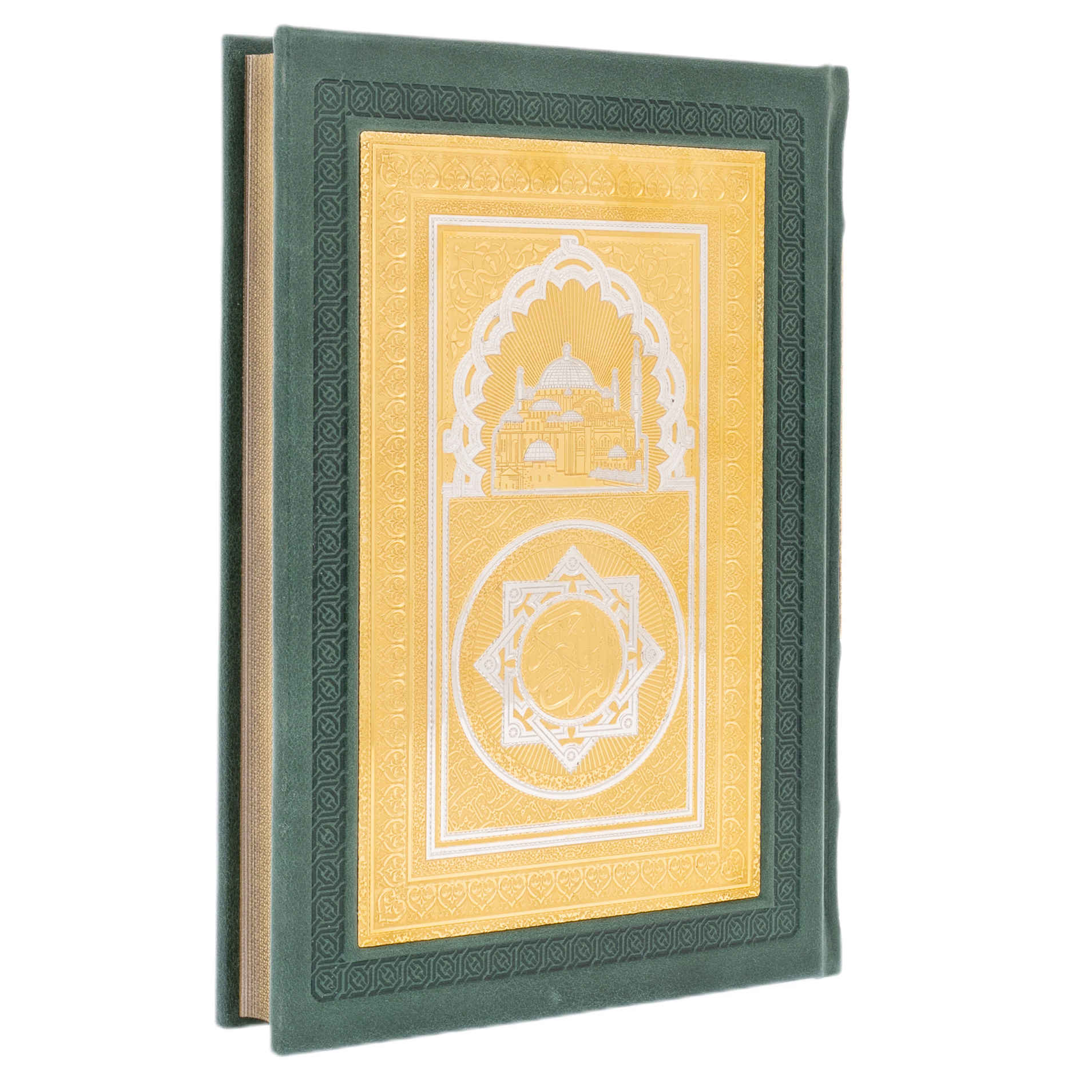 Книга в кожаном переплете "Коран" перевод с арабского и комментарий М.-Н.О. Османова, в коробеКнига в кожаном переплете "Коран" перевод с арабского и комментарий М.-Н.О. Османова, в коробеИздание Священного Корана в роскошном оформлении представляет собой редкий образец исламской книжной культуры, сочетающий в себе духовную ценность и изысканный художественный подход. Обложка выполнена из мягкой натуральной кожи глубокого изумрудного оттенка и декорирована восточным орнаментом, воспроизводящим мотивы классической арабской каллиграфии и геометрии. Объемный тиснёный узор, покрытый многослойной полихромной печатью, дополнен металлическими уголками и надежной застёжкой. Книга помещена в индивидуальный футляр, оформленный в аналогичном стиле, создающем завершённый ансамбль подарочного уровня.