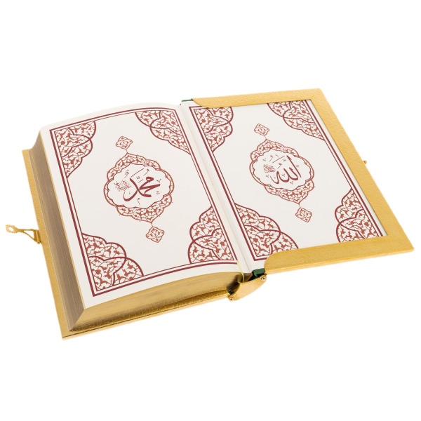 Такой экземпляр рассчитан на взыскательного читателя, для кого Коран является не только священным текстом, но и символом духовной опоры. Он уместен как в личной библиотеке, так и в качестве достойного подарка для религиозного деятеля, высокопоставленного гостя или близкого человека, глубоко погружённого в исламскую традицию. Это не просто книга — это знак уважения, благоговения и возвышенной эстетики.