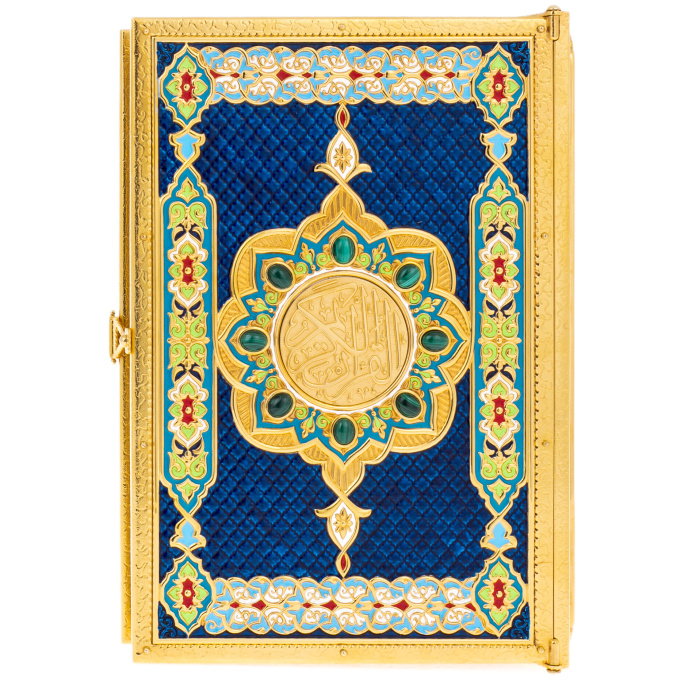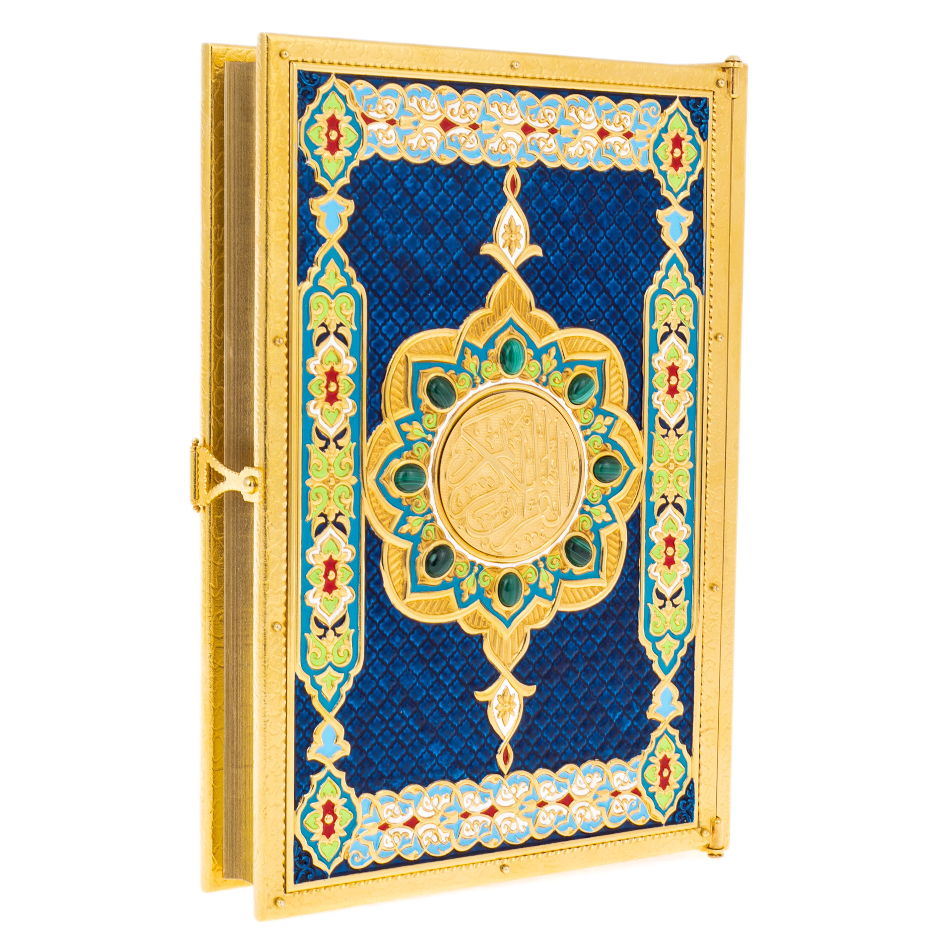 Коран украшенный "Солнце" с малахитом, синий, Златоуст
