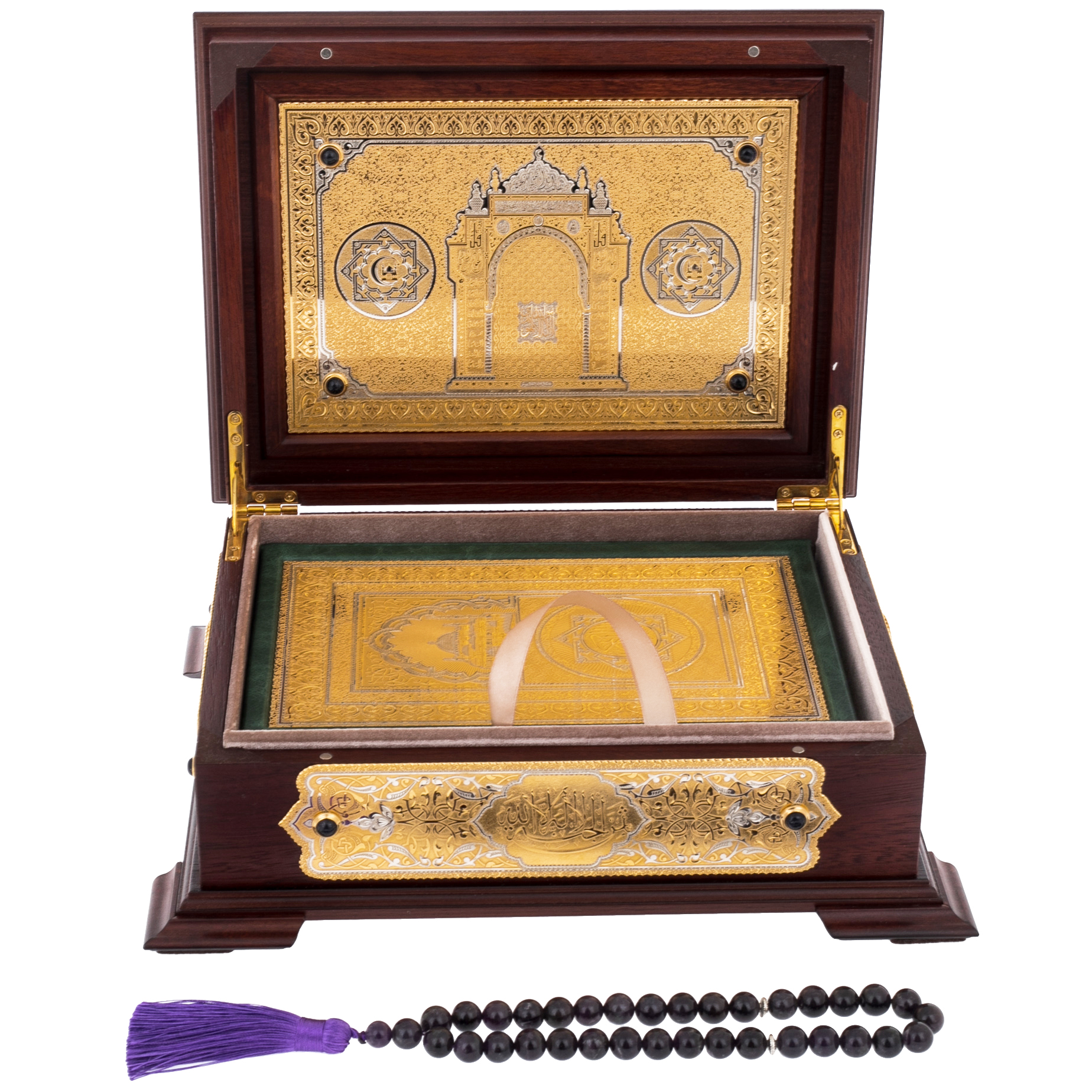 Подарочная книга в кожаном переплете "Коран" в ларце, с четками, Златоуст