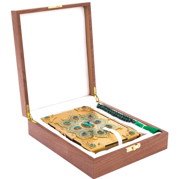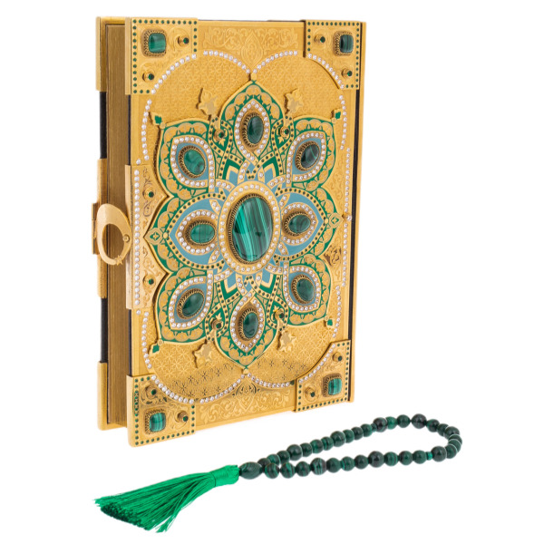 Коран подарочный "Малахитовый цветок" с четками, Златоуст