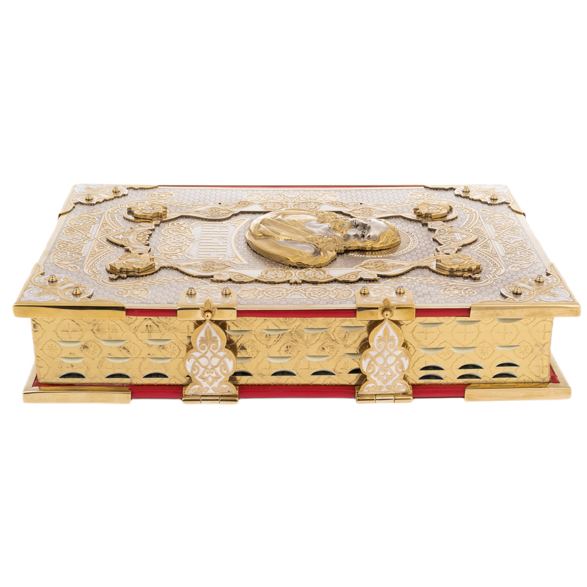 Представляем вашему вниманию величайший шедевр книжного искусства — Библию, изготовленную в уникальной златоустовской технике и украшенную сияющими фианитами. Этот великолепный экземпляр воплощает в себе сочетание духовного наследия и высочайшего мастерства ремесленников, создавая неповторимое произведение, которое станет истинным украшением любой коллекции и бесценным даром.