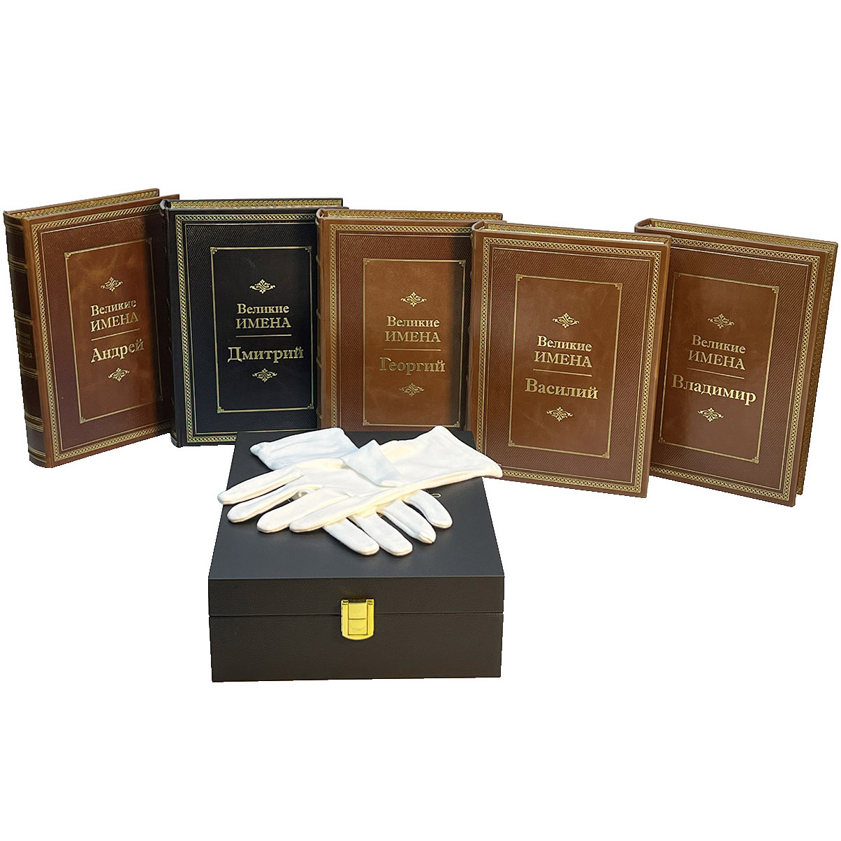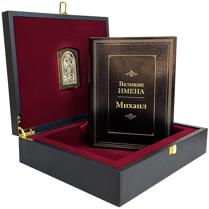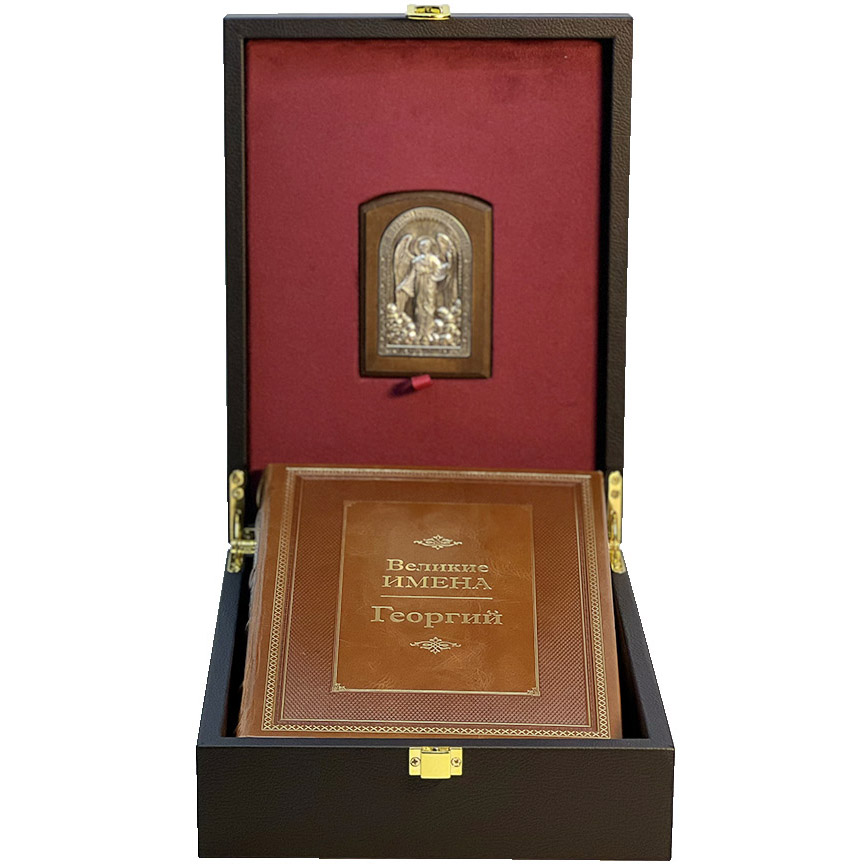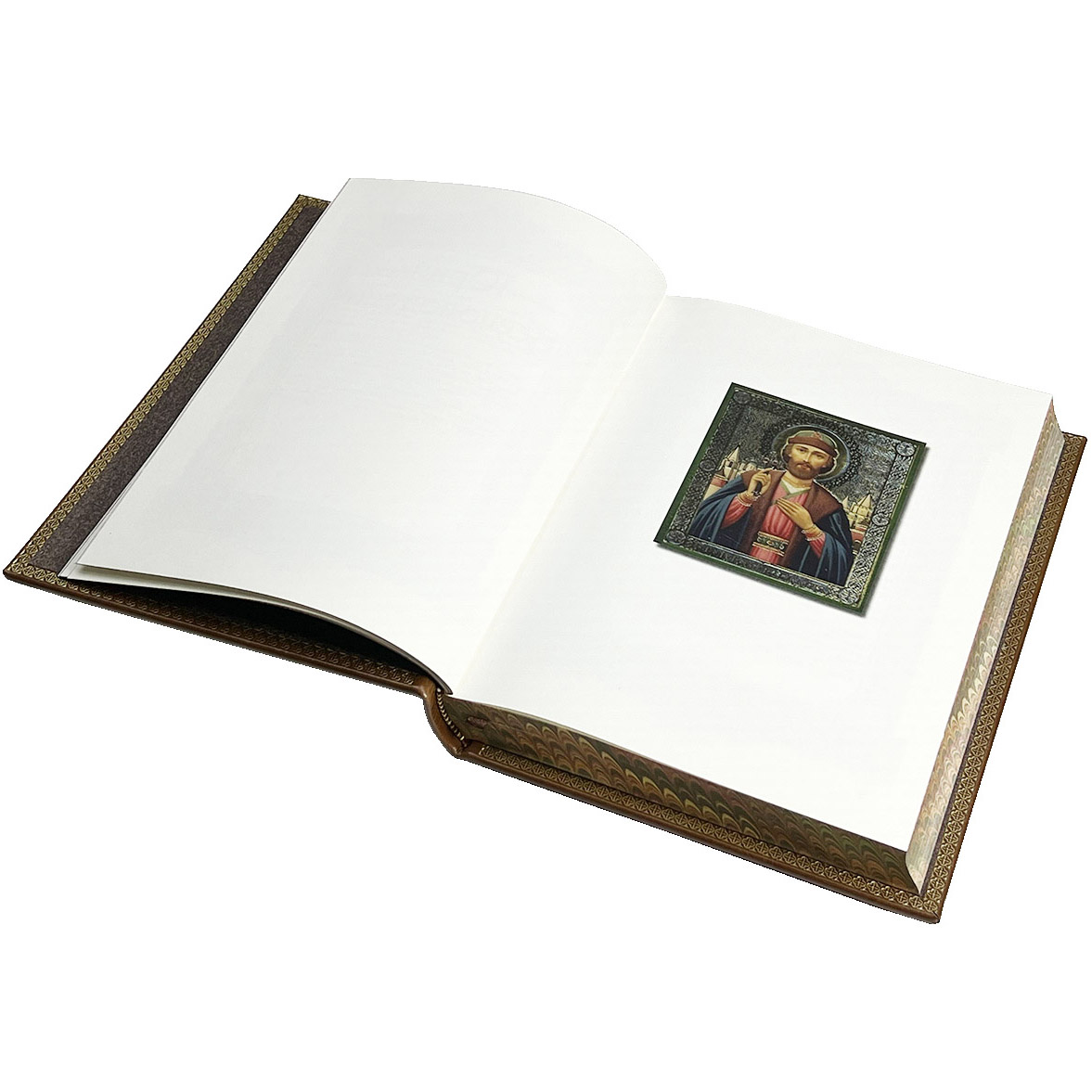 Подарочная книга в кожаном переплете "Великие имена с иконой Ангел Хранитель"