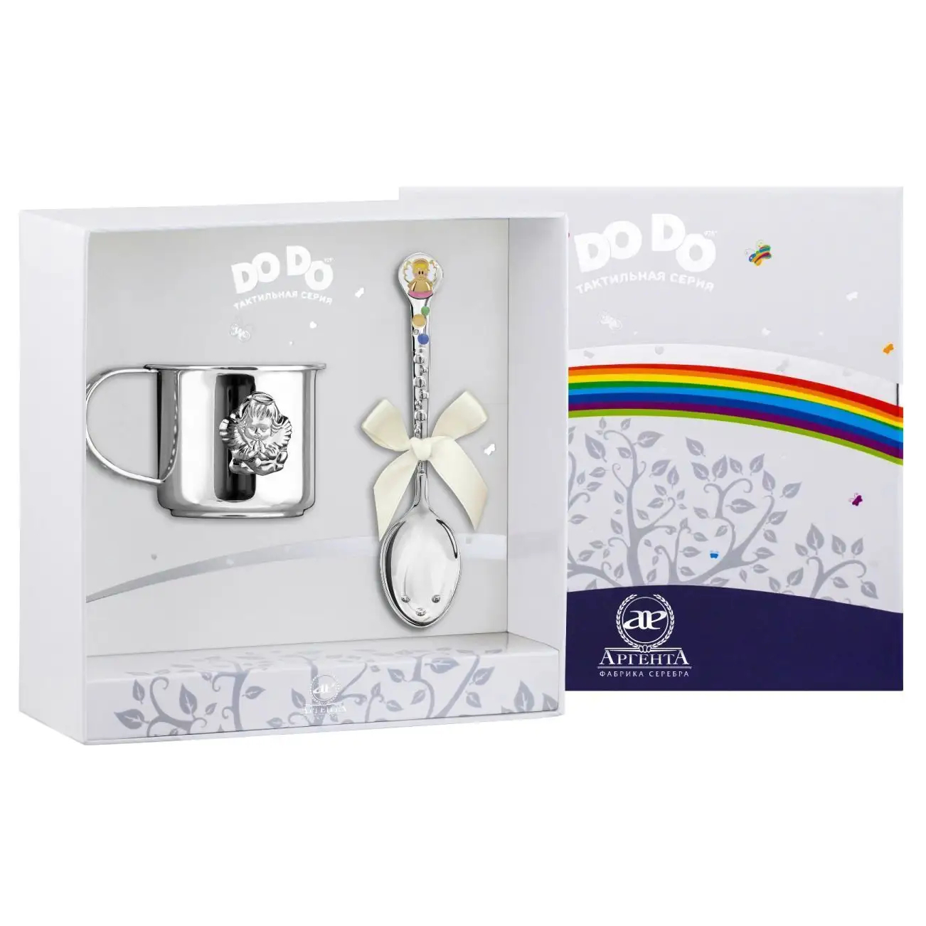 Набор детский DODO из серебра "Ангел": кружка, ложка с позолотой и с эмалью, на 1 персону