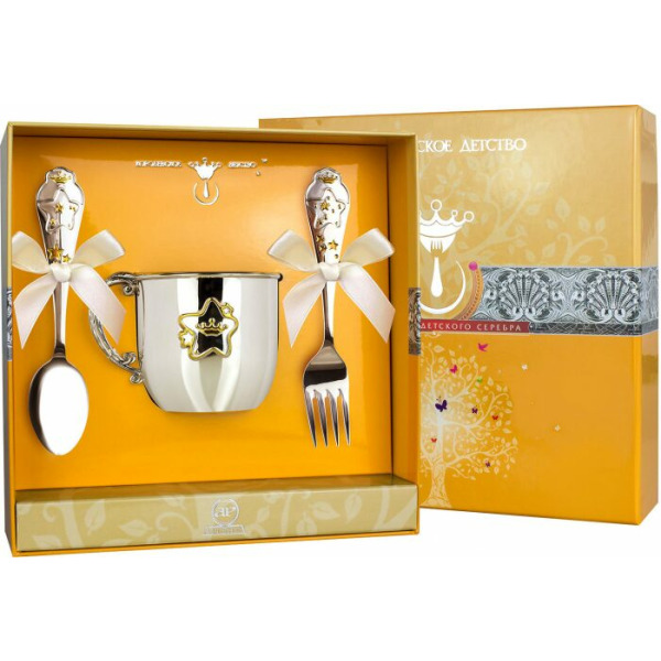 Набор детский серебряный КД "Звезда": вилка, кружка, ложка с позолотой, на 1 персону