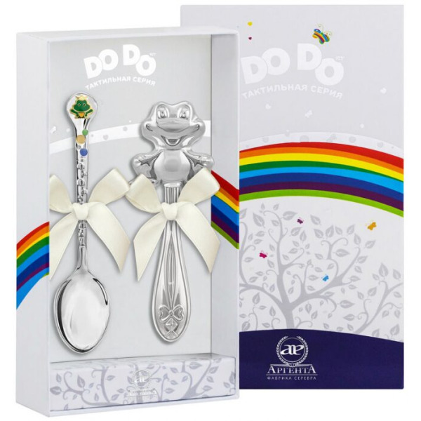 Набор серебряный для малышей DODO "Лягушонок": ложка и погремушка, на 1 персону