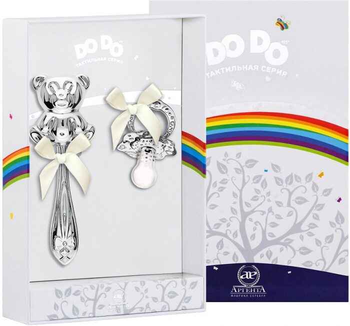 Набор серебряный для малышей DODO "Медведь" (2 предмета, с пустышкой)
