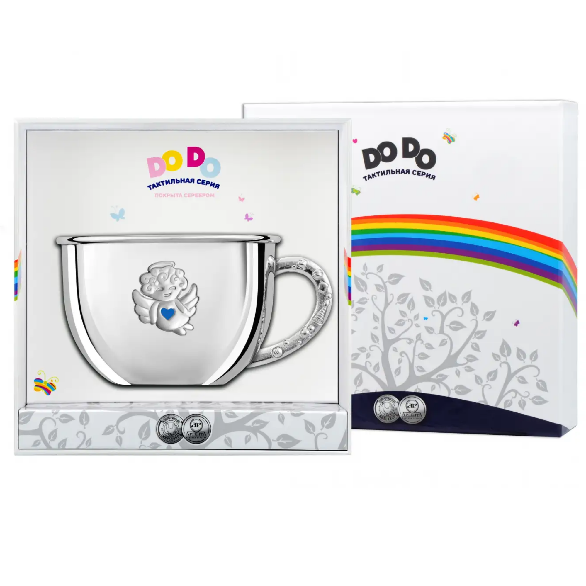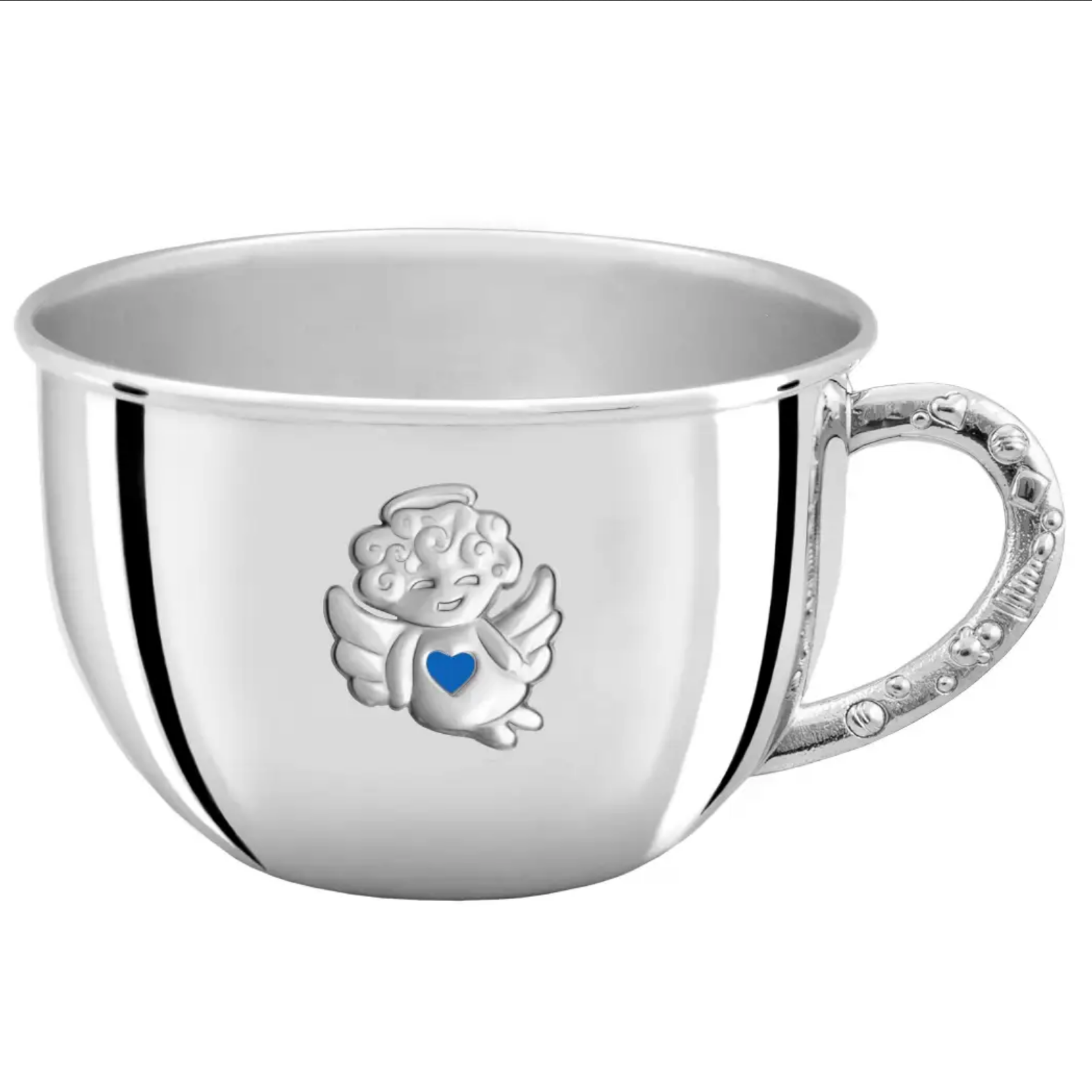 Посеребренная бульонница детская "Ангел" с голубой с эмалью, на 1 персону