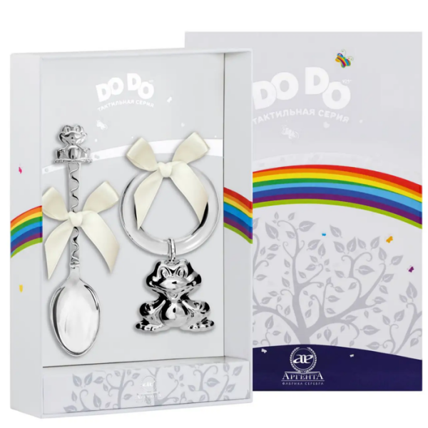 Тактильные развивашки DO DO - инновационный продукт, разработанный Фабрикой серебра «АргентА» совместно с ведущими специалистами в области логопедии, дефектологии и детской психологии. Тактильная серия DO DO одобрена педиатрами России и получила официальные заключения специалистов: она действительно способствует раннему развитию малышей. Приятный на ощупь специальный рельеф с выпуклыми элементами на черенке и яблочке ложки (и других изделиях) способствует развитию мелкой моторики малыша. Эти элементы легко массируют губы и язык ребёнка во время кормления или игры, развивают вкусовые рецепторы, мимические и артикуляционные мышцы, способствуют раннему развитию речи. Яркая цветная эмаль стимулирует эстетическое развитие ребёнка, а также привлекает внимание и повышает аппетит. Проработанный до мельчайших деталей дизайн подготавливает руку ребёнка к последующему овладению письмом и обучению в школе. DO DO - это настоящий праздник ощущений для маленьких пальчиков и любопытного язычка!