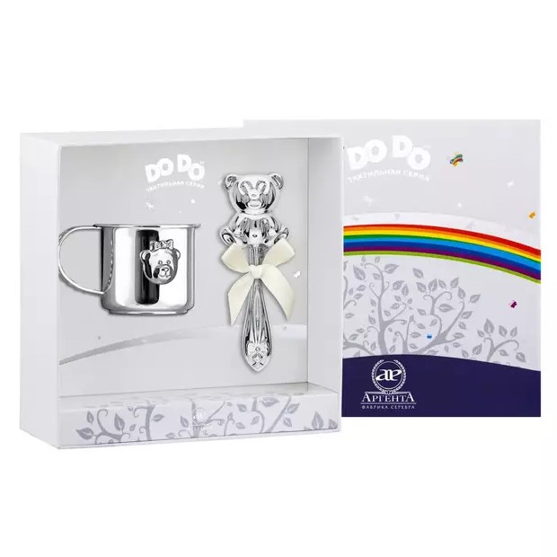 Серебряный детский набор "Мишка-Малышка": кружка и погремушка "Медвежонок" на 1 персону