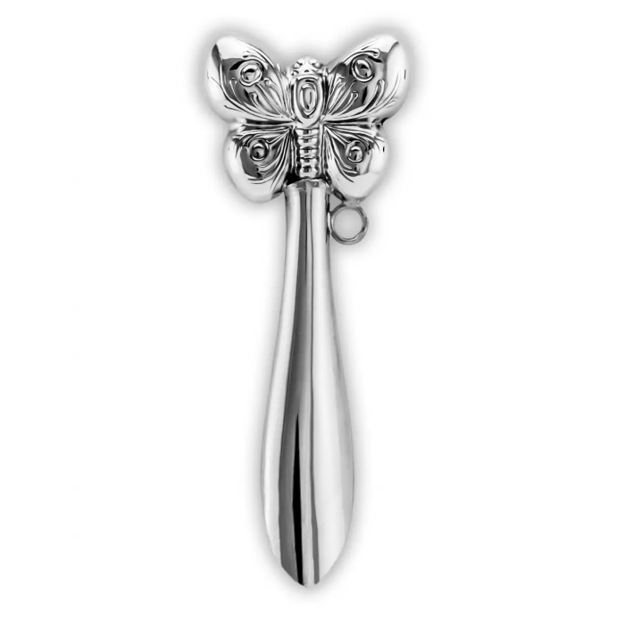 Серебряный набор для малышей "Сердце с цветами": ложка и погремушка "Бабочка"