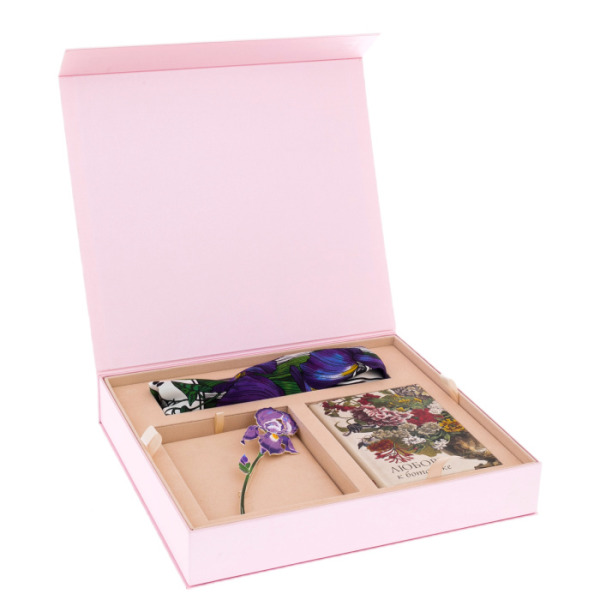 Набор подарочный с книгой, брошью "Ирис" и шелковым платком