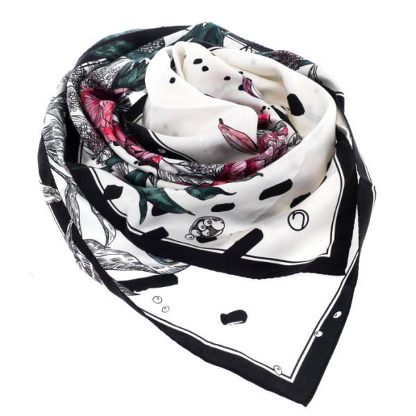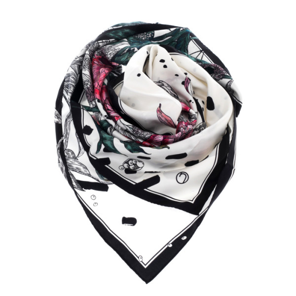 Платок выполнен из высококачественного натурального шелка с изображением букета прекрасных весенних цветов. Его универсальные размеры позволяют носить как на голове, так и повязав на шею или на ручку сумочки. Он идеально подойдет к любому стилю и станет ярким акцентом в образе.